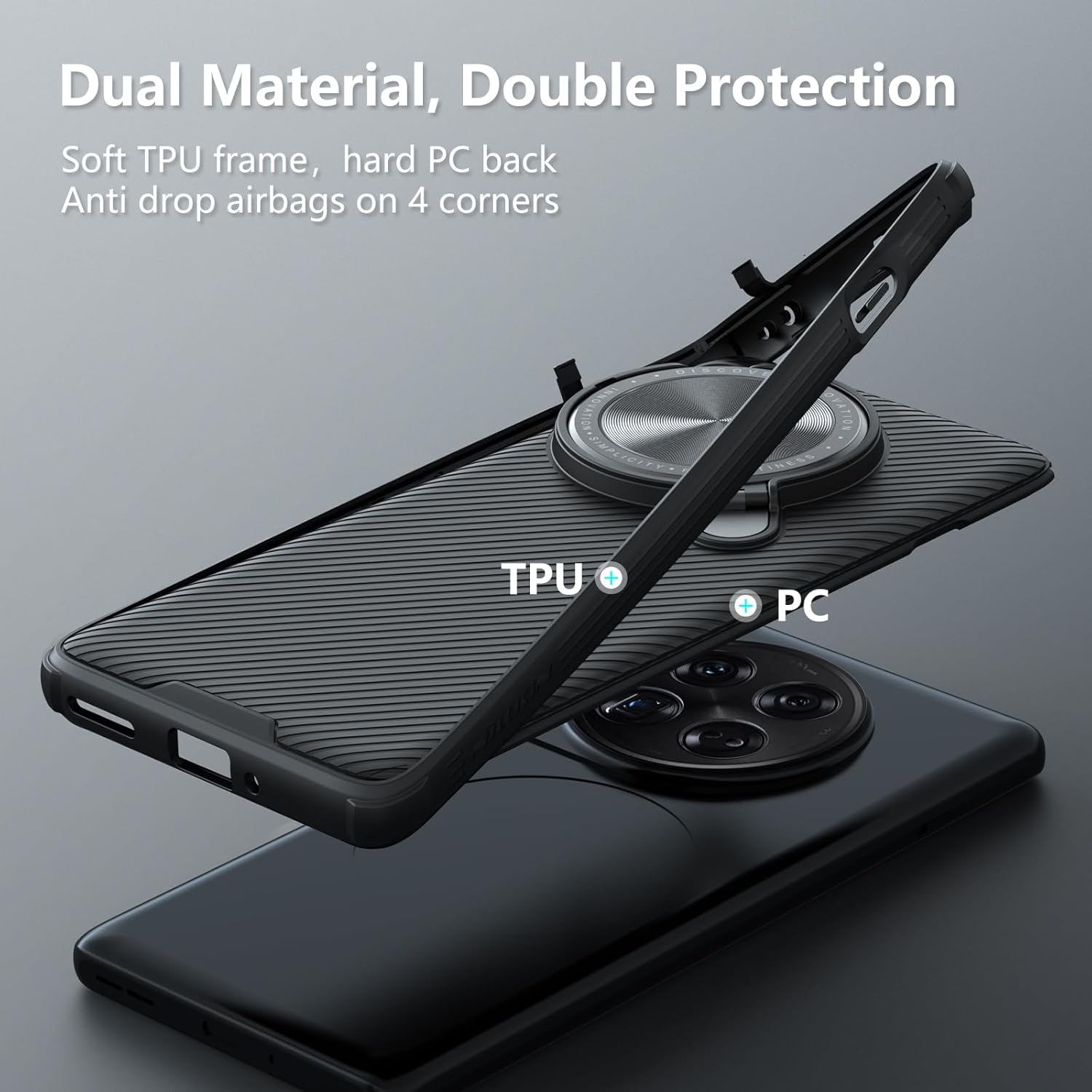 ✅【Drop Protection】Soft TPU frame, hard PC back and invisible airbags on 4 corners, Nillkin OnePlus 12 magnetic phone Case is designed to effectively protect your phone from shocks and falls.