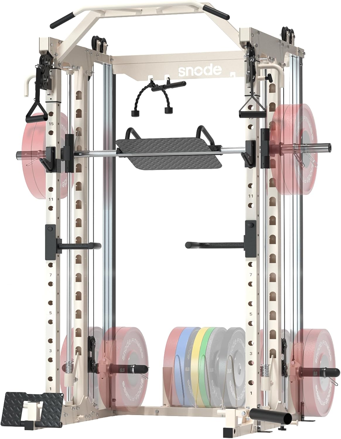 SNODE ALL10 Smith Machine for Home Gym, Power Rack with Cable Crossover, Squat Rack with Leg Press and Advanced LAT Pull-Down, 2000LB Weight Capacity