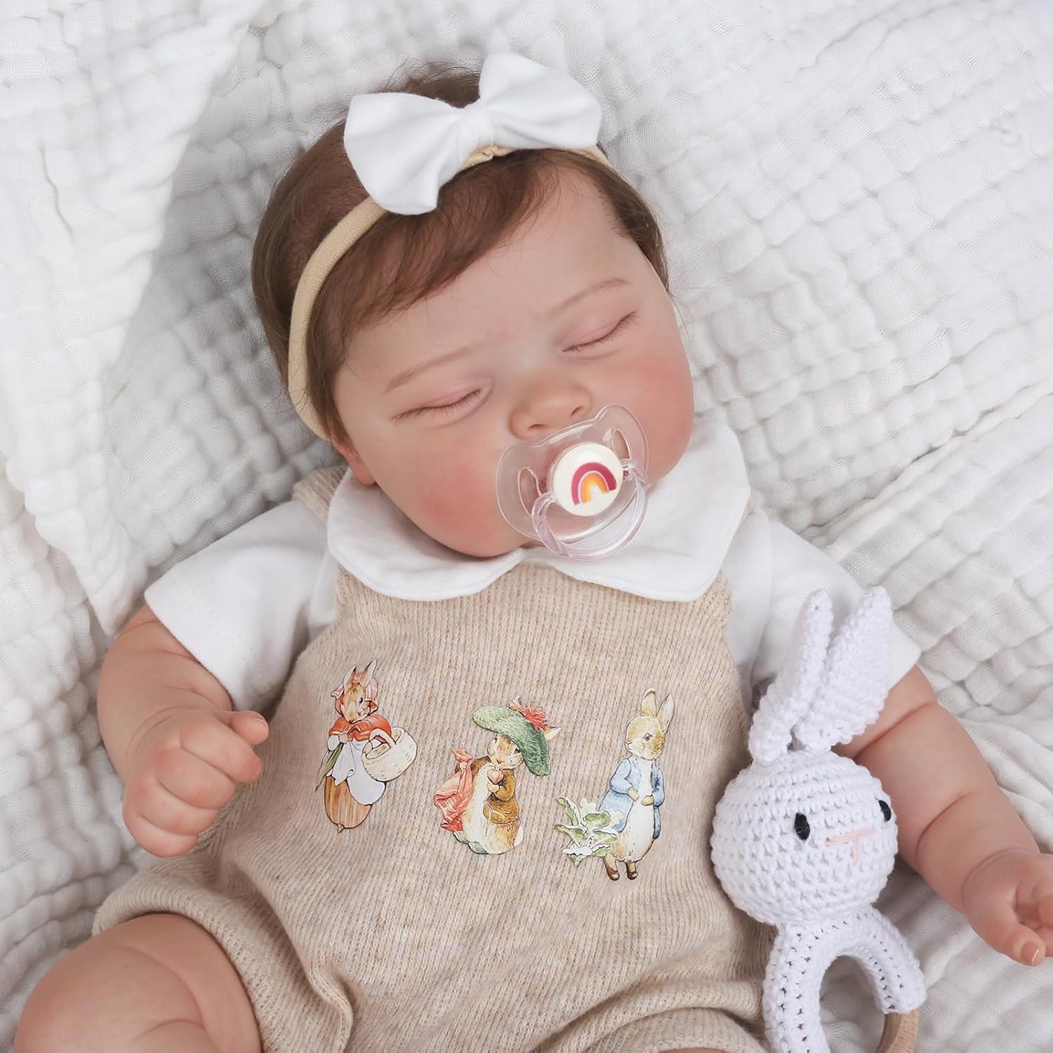 ꕥ Warm Embrace Like Holding a Real Baby This reborn baby doll is your most intimate companion, perfectly replicating the softness and cuteness of a real newborn. With a realistic size (about 55cm, 3.5lbs), full vinyl limbs, and a weighted cloth body, she feels like a peacefully sleeping angel in your arms, bringing a comforting sense of warmth, just like holding a real baby. She can wear 0-3 months baby clothes, making her the perfect playmate for children during every precious moment.