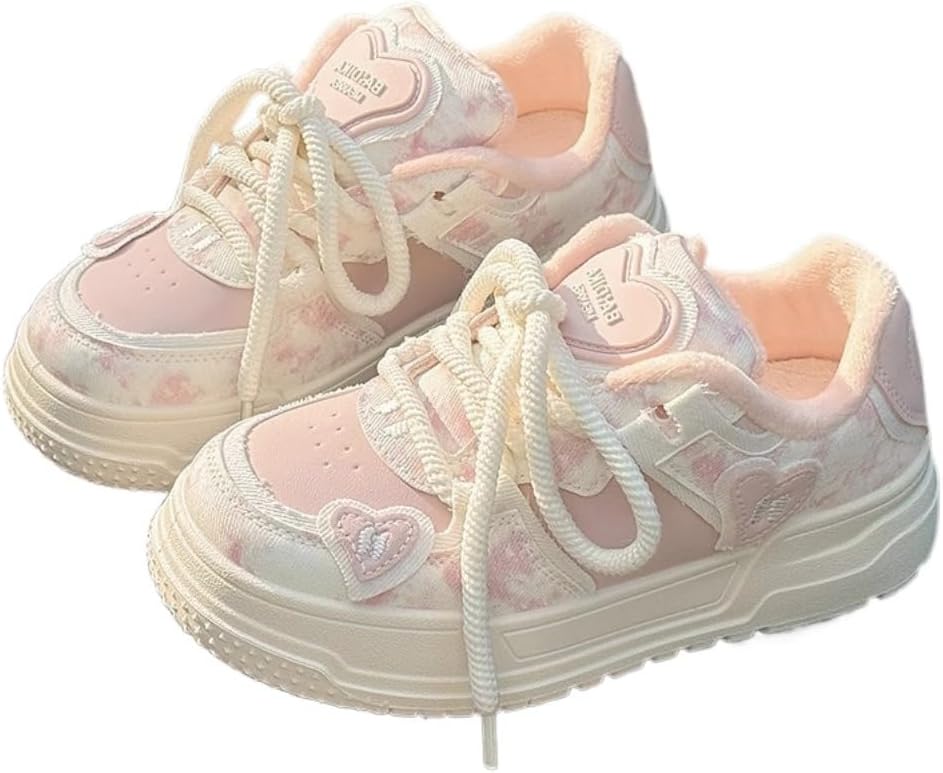 Geerta Cute Shoes Y2K の Girls Love Heart Chunky Cookie Sneaker Pretty Pastel Aesthetic Platform Thick Sole Japanese Kawaii Retro Vintage White Doll Shoes for Women Casual School Summer