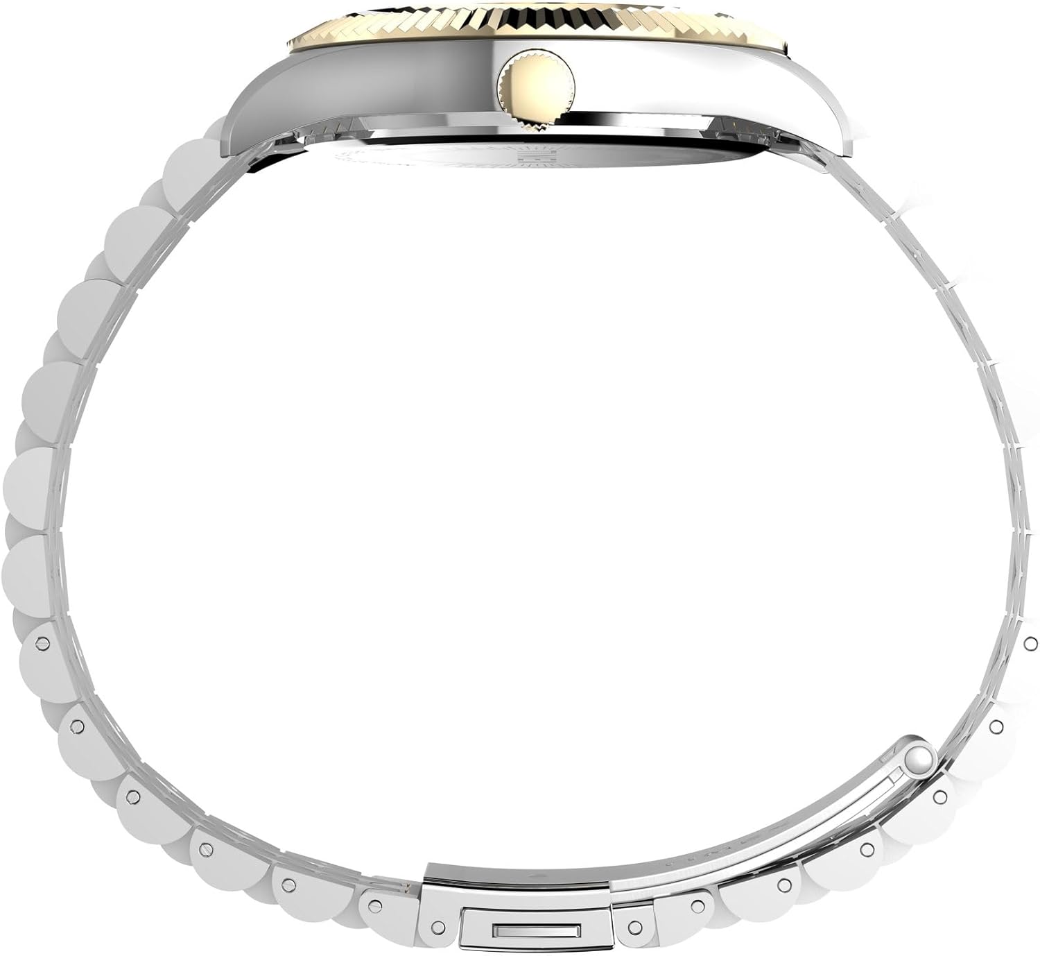 A fresh take on a traditional watch, the Timex Legacy never fails to find new ways of telling our story. This timeless piece embraces modern watchmaking with easy-to-wear proportions, showcasing a black sunray dial with faceted applied indices and an elegantly fluted bezel. It’s a 36mm goes-with-anything watch with a brushed and polished two-tone stainless-steel bracelet and case—a testament to our heritage and well-suited for everyday wear.