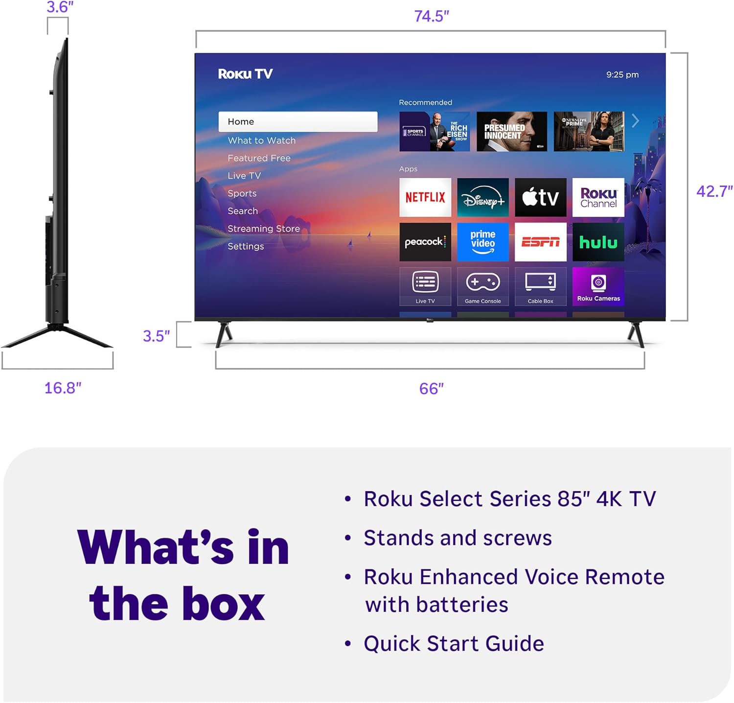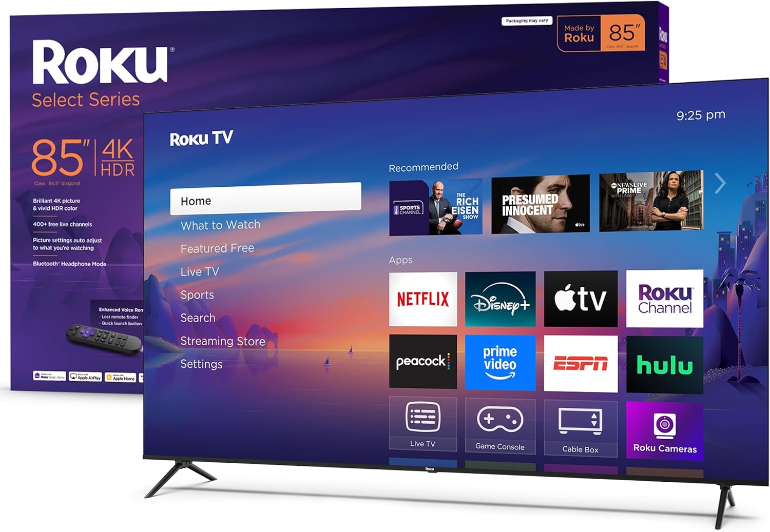 Roku Smart TV 2025 – 85-Inch Select Series, 4K HDR TV – RokuTV with Enhanced Voice Remote – Flat Screen LED Television with Wi-Fi for Streaming Live Local News, Sports, Family Entertainment