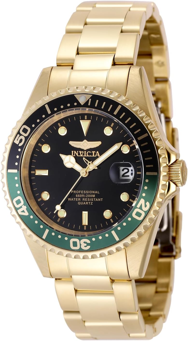Invicta Pro Diver Men 37.5mm Stainless Steel Gold Black dial PC32 Quartz