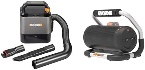 Bundle of WORX WX030L 20V Cordless Cube Vac Compact Vacuum+ WORX 20V Bluetooth Speaker Sound, 2-in-1 Bluetooth/Aux Input, Durable for Jobsite, Wireless Portable Speaker, Tool Only, WX009L.9