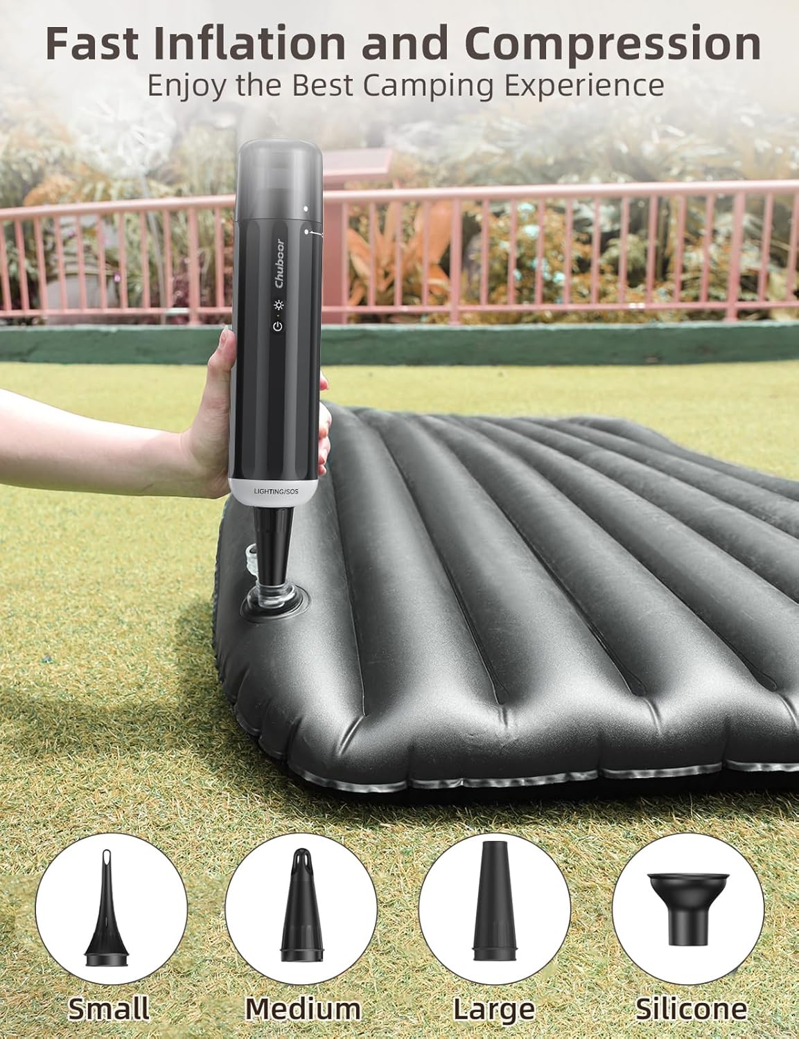 Comprehensive Accessories for Multi-Purpose Use: The included 2-in-1 nozzle makes cleaning hard-to-reach areas, pet hair, and seat crevices a breeze. Additionally, three air nozzles are provided, allowing you to inflate items like air mattresses, pool floats, and sleeping pads with ease. The vacuum also features an air extraction function, perfect for vacuum-sealing storage bags, making it an excellent tool for both home and travel needs.