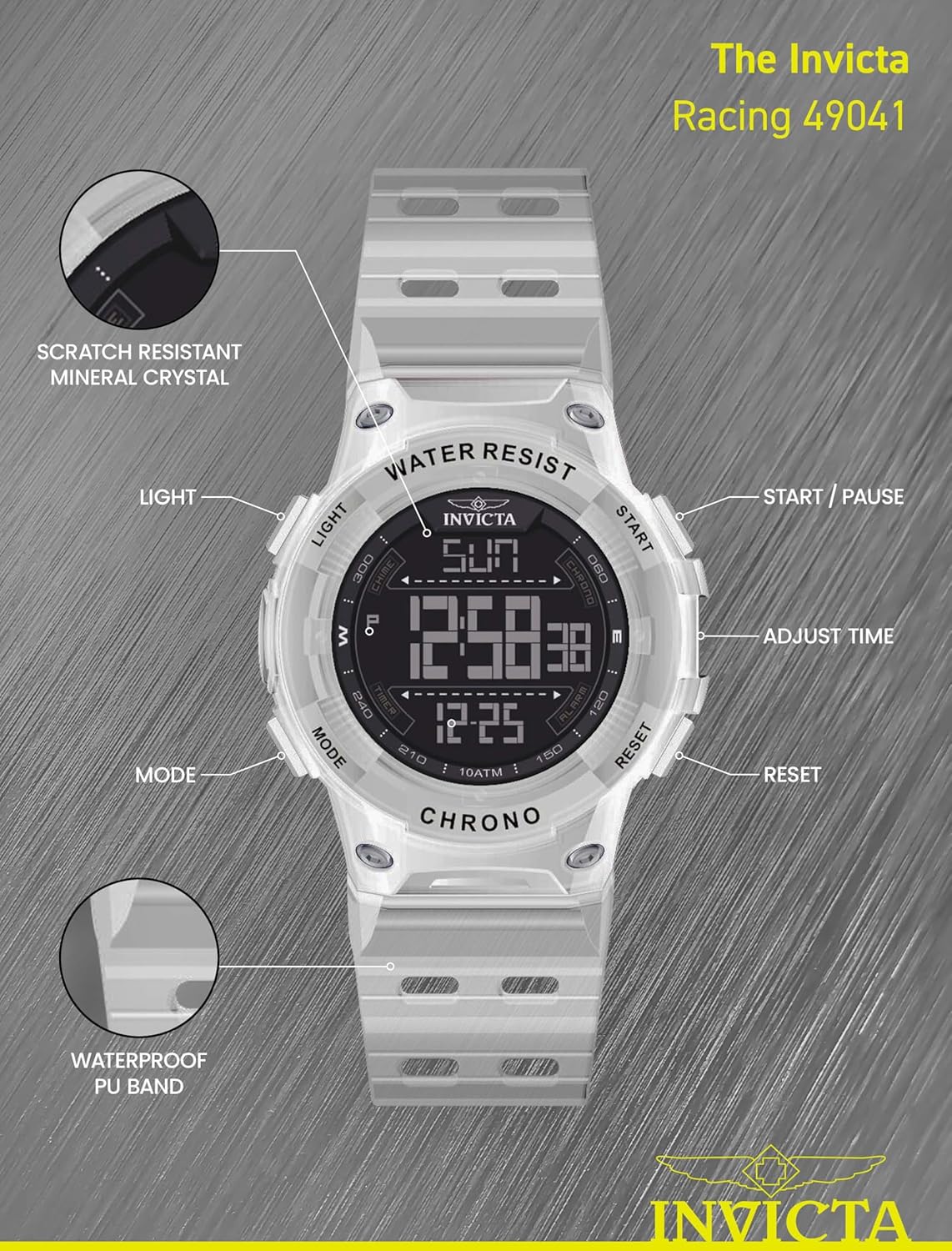 Invicta Racing Men 52mm Plastic White Black dial Electronic Digital