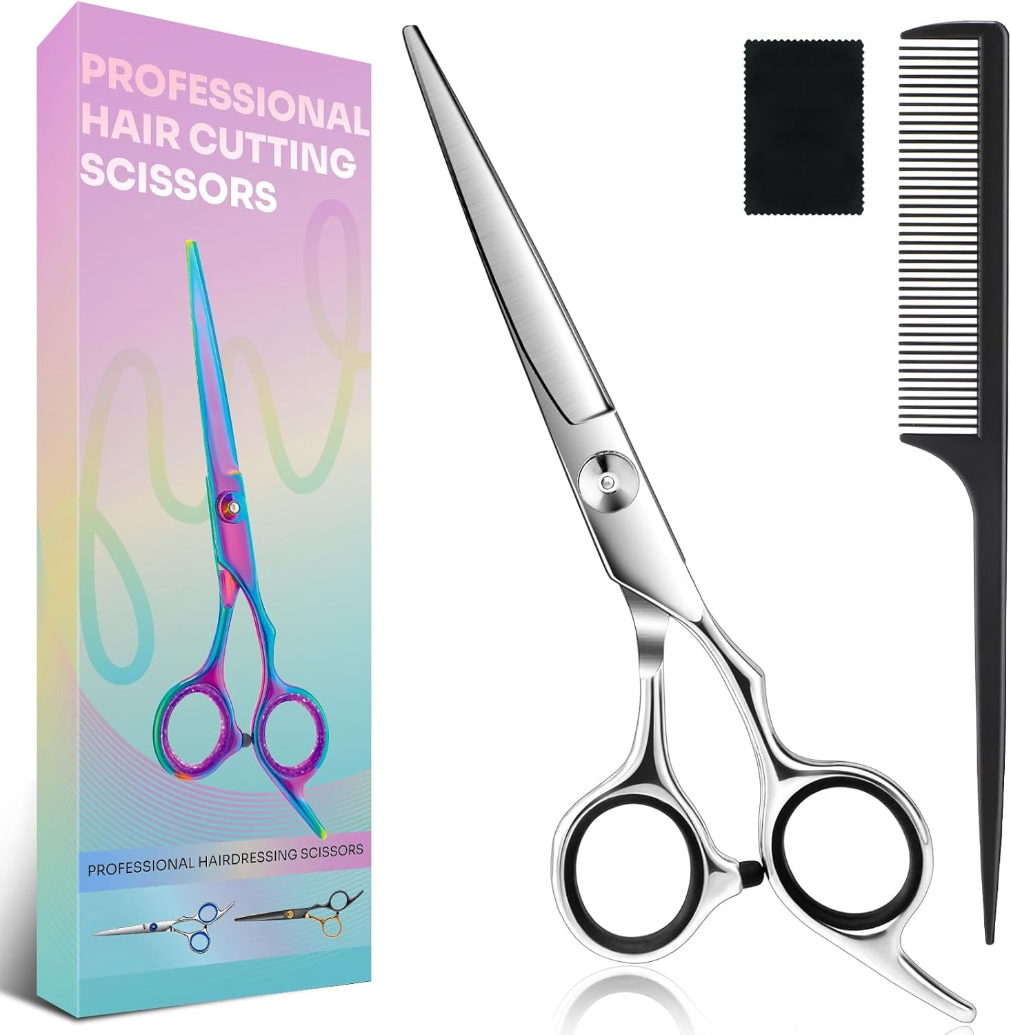 HAIR SCISSORS:This professional 6.5" hair cutting scissors set is made from high-quality stainless steel, ensuring sharp performance and long-lasting use. The corrosion and rust-resistant material guarantees smooth cutting even with frequent use. The lightweight design provides easy control, while the precision blades are hand-crafted and checked for quality. Includes a hair comb for added convenience.
