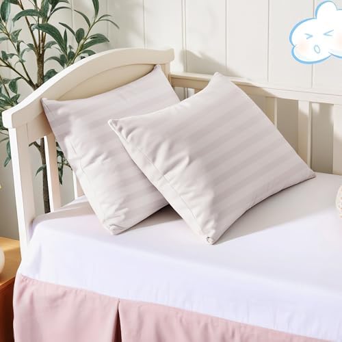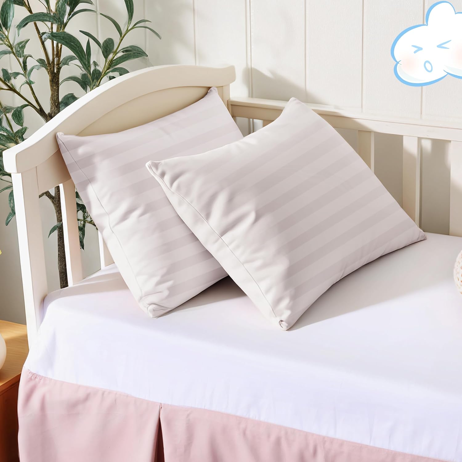 100% Cotton Toddler Pillow Protectors with Invisible Zipper, 600 Thread Count Sateen Wave Soft Breathable Hypoallergenic Nursery Pillowcases for Kids, 13x18 Inches, Set of 2