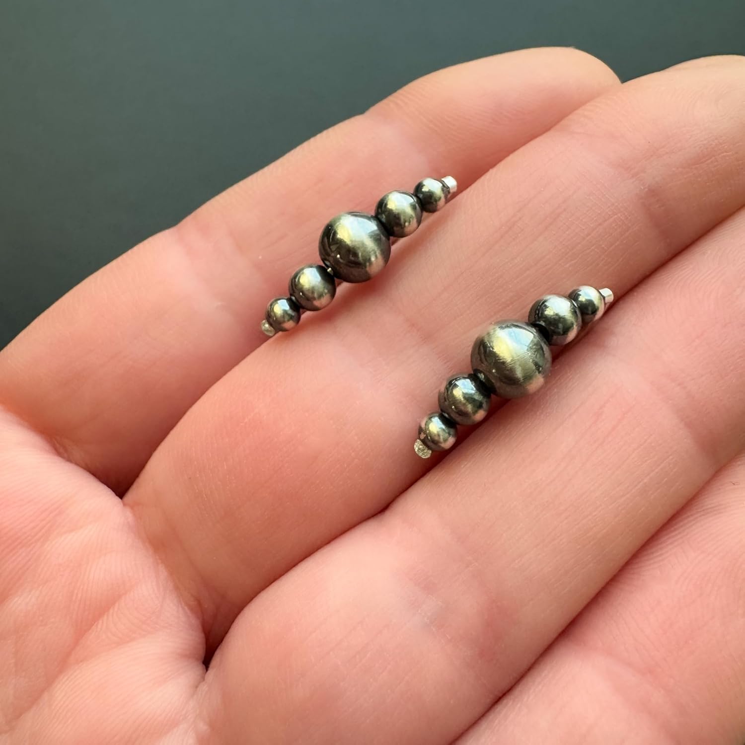 Small Sterling Silver Navajo Pearl Style Earrings for Women, Lightweight Dainty Beaded Threader/Open Hoop Earrings Western Jewelry Handmade in the USA (Navajo Pearl Style - Small)