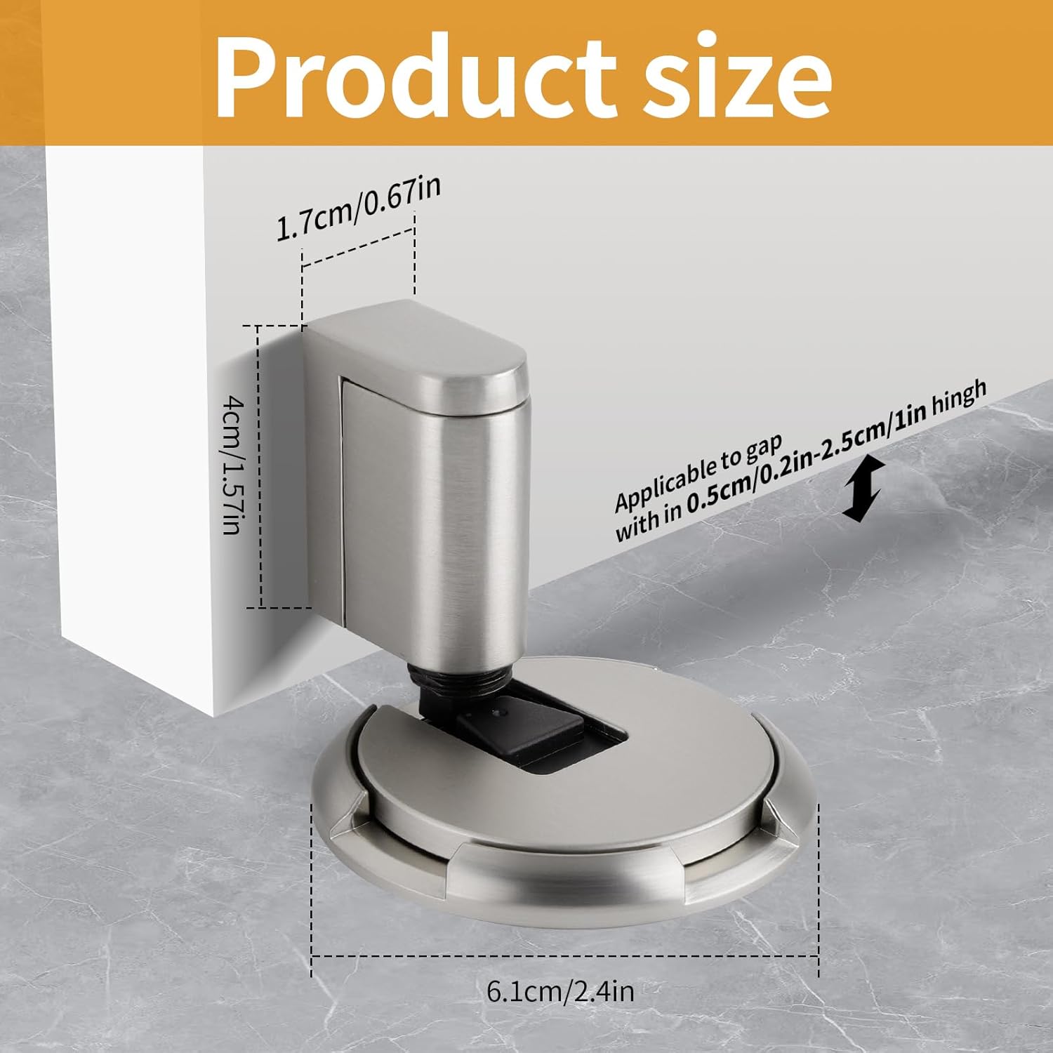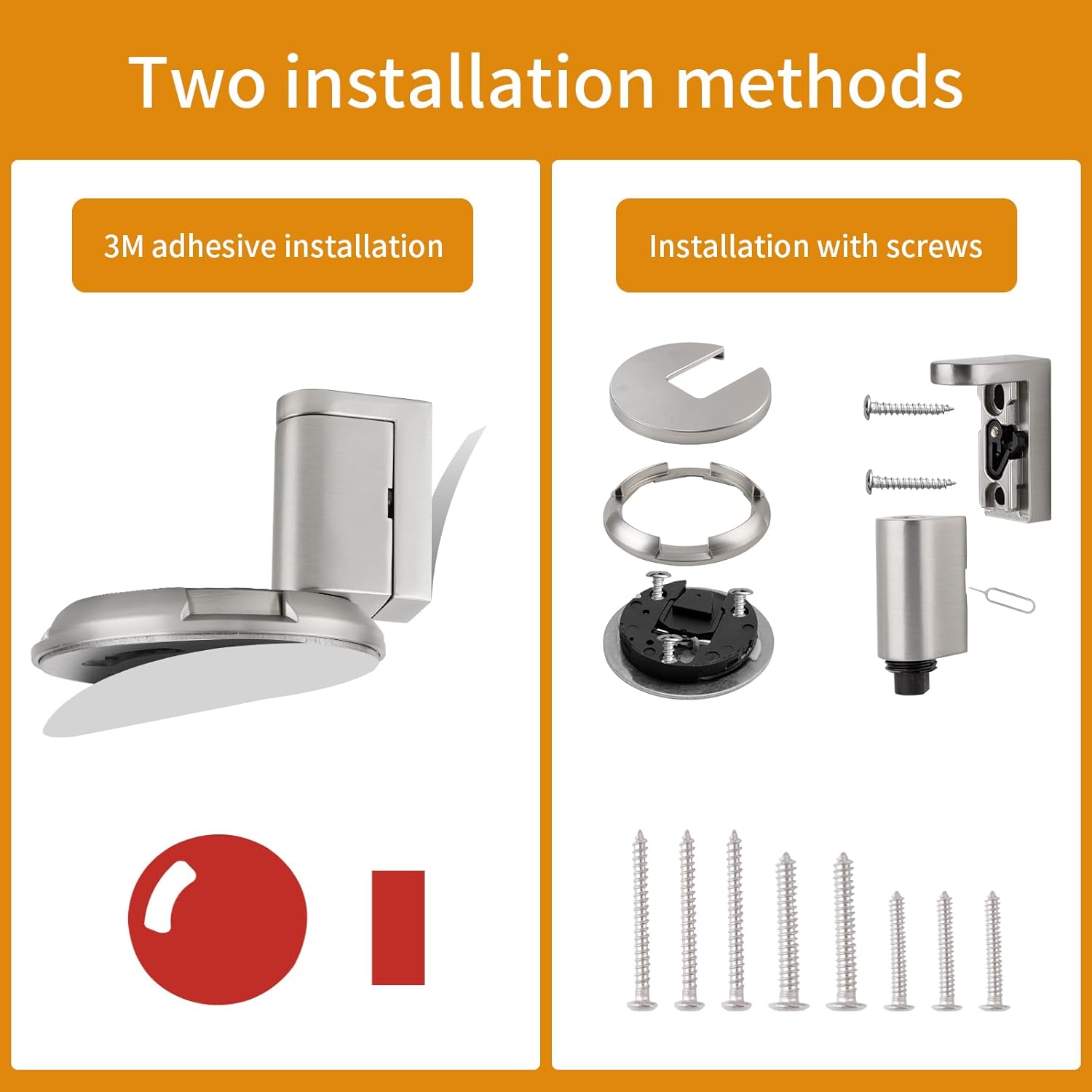 INSTALLATION VIDEOS ARE VERY IMPORTANT! The video is divided into two parts: one part demonstrates installation using screws, while the other part shows installation using adhesive.(Please do not attempt to hold the door stopper in your hand to check its operation .This door stopper has a special structure and cannot work properly when held in your hand)
