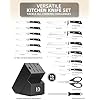 【15 Pcs Knife Set · For All Kitchen Needs】 Comes with 8" Chef Knife, 7" Santoku Knife, 8" Slicing Knife, 8" Bread Knife, 5" Utility Knife, 3.5" Paring Knife, 4.5" non-serrated Steak Knives 6 pcs, Kitchen Shears, Knife Sharpener rod, one-stop solution to ingredient handling challenges. All knives are housed in a sturdy, durable and modern black acacia wood block to protect the sharp blades with a non-slip bottom. Tip: For long-lasting use, we recommend hand washing only.