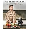 【Exclusive 10° Blades · Effortless Precision Cutting】KnifeSaga knife block set is the first to combine heat treatment technology and condensation technology, and with the senior craftsmen's hand-precision grinding of the blade, creating unique 10° blades, cutting meat and breaking bones smoothly. With the design of the double-sided blade, it's easy to cut thinly sliced tomatoes, raw meat tendons and membrane, saving more than 50% of energy, Elderly and women can easily control.