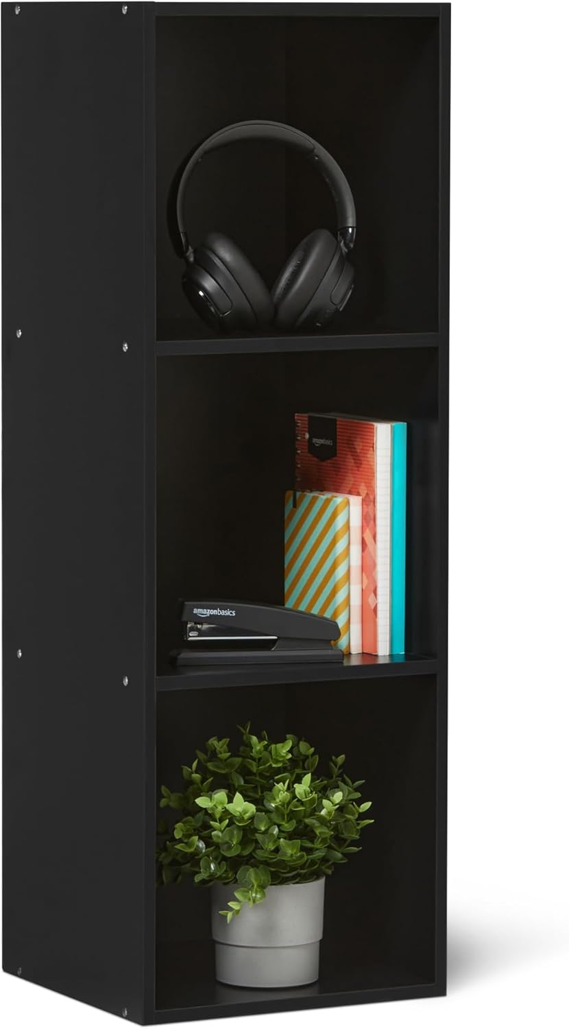 Amazon Basics 3-Cube Bookcase Compatible with Fabric Storage Cube Organizers, Black