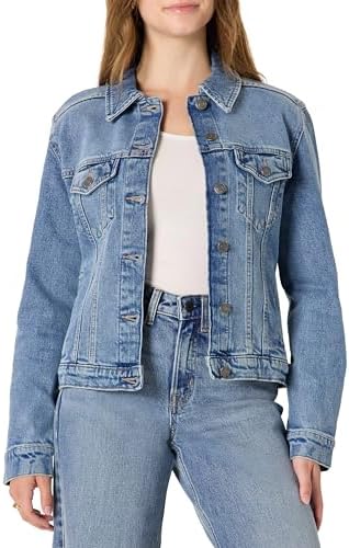 Amazon Essentials Women's Regular-Fit Low Stretch Denim Button-Front Trucker Jacket
