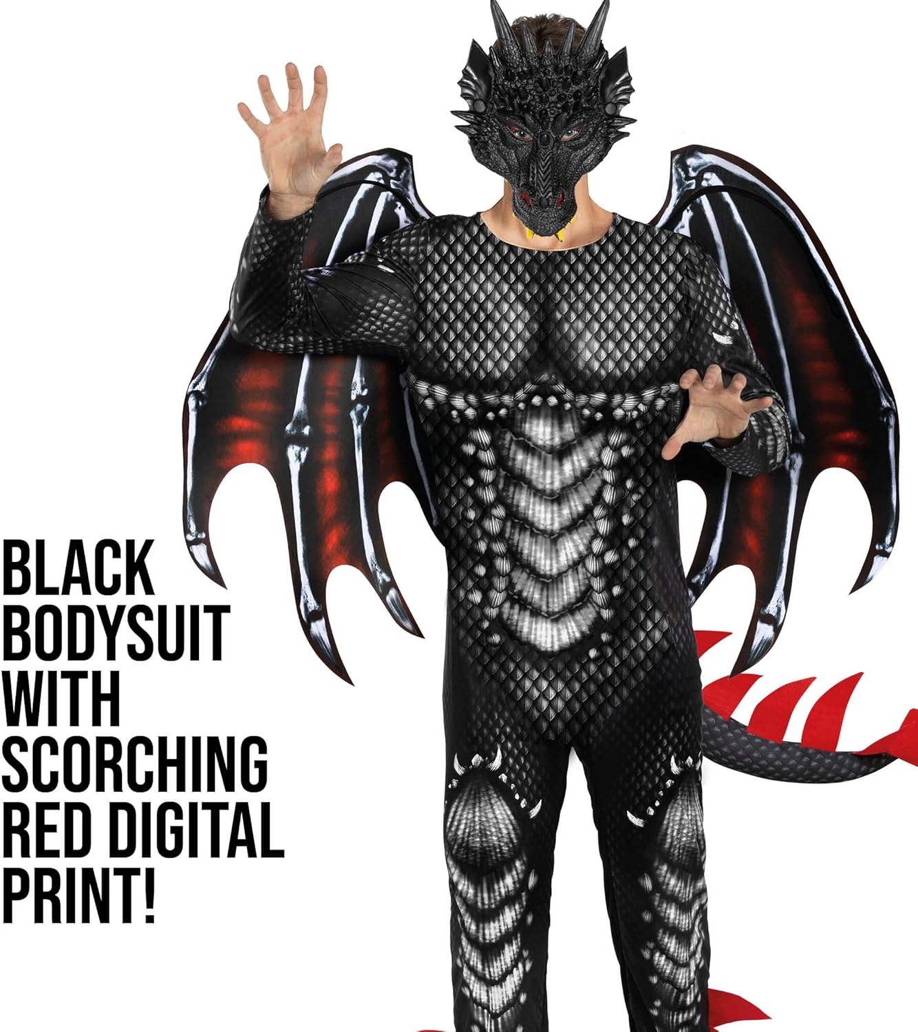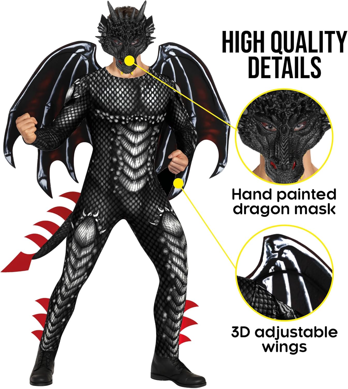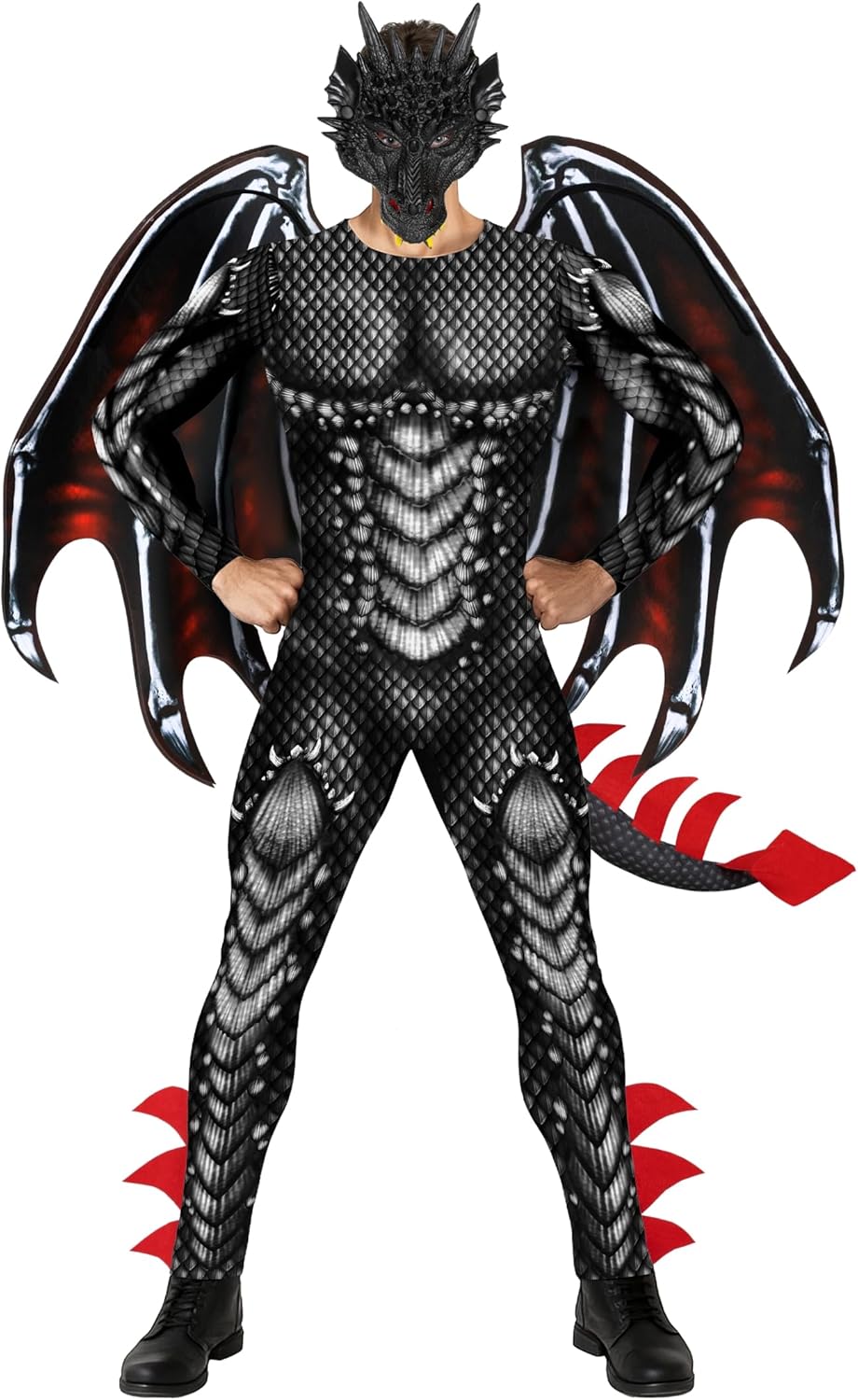 Complete Adult Dragon Costume - Transform instantly with our dragon costume men, featuring a scaled jumpsuit with spiked tail, dragon wings & a fierce dragon mask for a legendary dragon style look you deserve! 5 Sizes of Men's Dragon Costume - Available in M, L, XL, XXL & 3XL, our dragon adult costume is designed with a stretch fit that moves with every body type. Please refer to the size chart of our dragon onesie adult for more information. Comfortable Adult Dragon Costume - Stand out with our dragon costume adult men style, with scale-textured fabric & a bold dragon mask and wings. Made from soft, breathable stretch material for a flawless fit and all-night wearability. Perfect Dragon Halloween Costume Adult - Turn heads at Halloween parties, cosplays, themed events, & masquerades with our mens dragon costumes for adults, giving you a head-to-toe look in seconds like no other. Be a legendary adult dragon today! dragon wings costume dragon costume accessories black dragon costume dragon mask adult dragon onesies dragon mask wings and tail dragon masquerade mask dragon men costume red dragon onesie adult dragon coatume adult men dragon costume adult dragon onesie dragon costume adult male adult dragon costume man adult onesie dragon dragon costumes for men adult dragon one piece costume dragon wings black