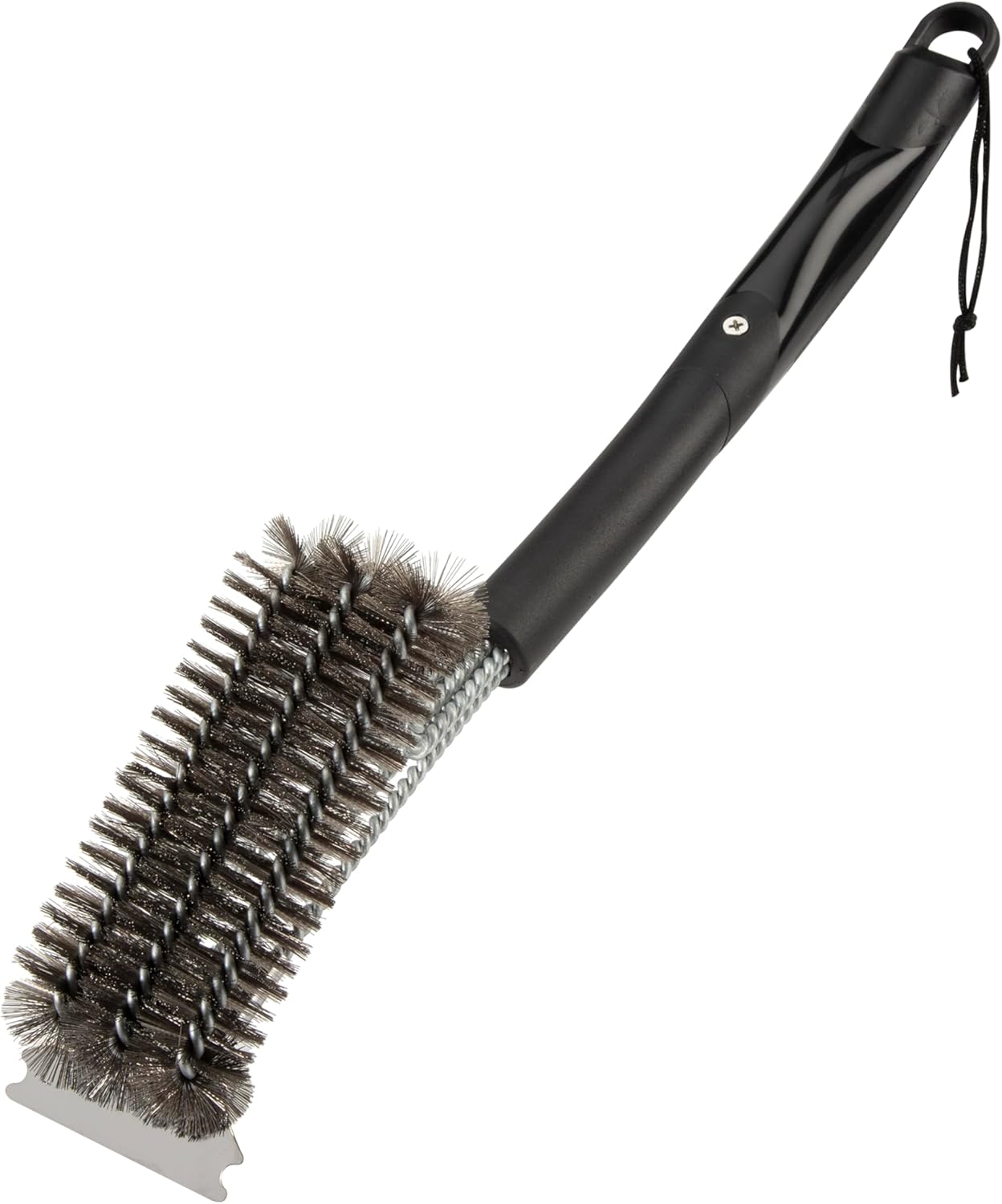 TRIPLE BRISTLE DESIGN: Three vertical rows of bristles provide faster and more efficient grill cleaning.