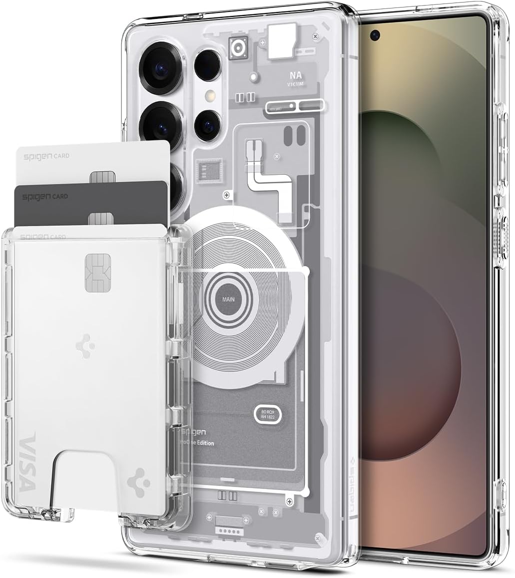 Spigen Ultra Hybrid MagFit (Zero One White) Designed for Galaxy S25 Ultra & Ultra Hybrid (MagFit) Wallet Card Holder (Crystal Clear)