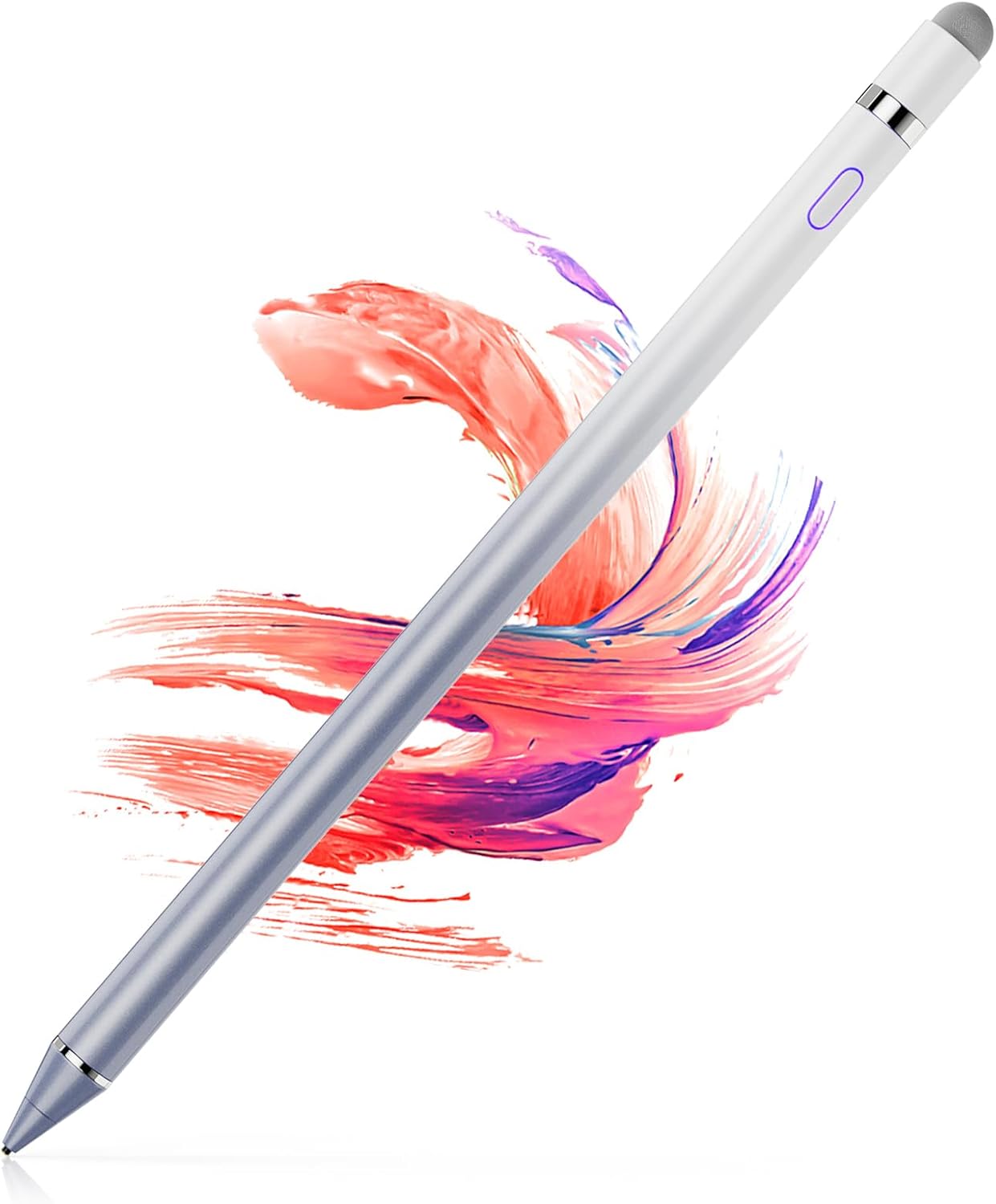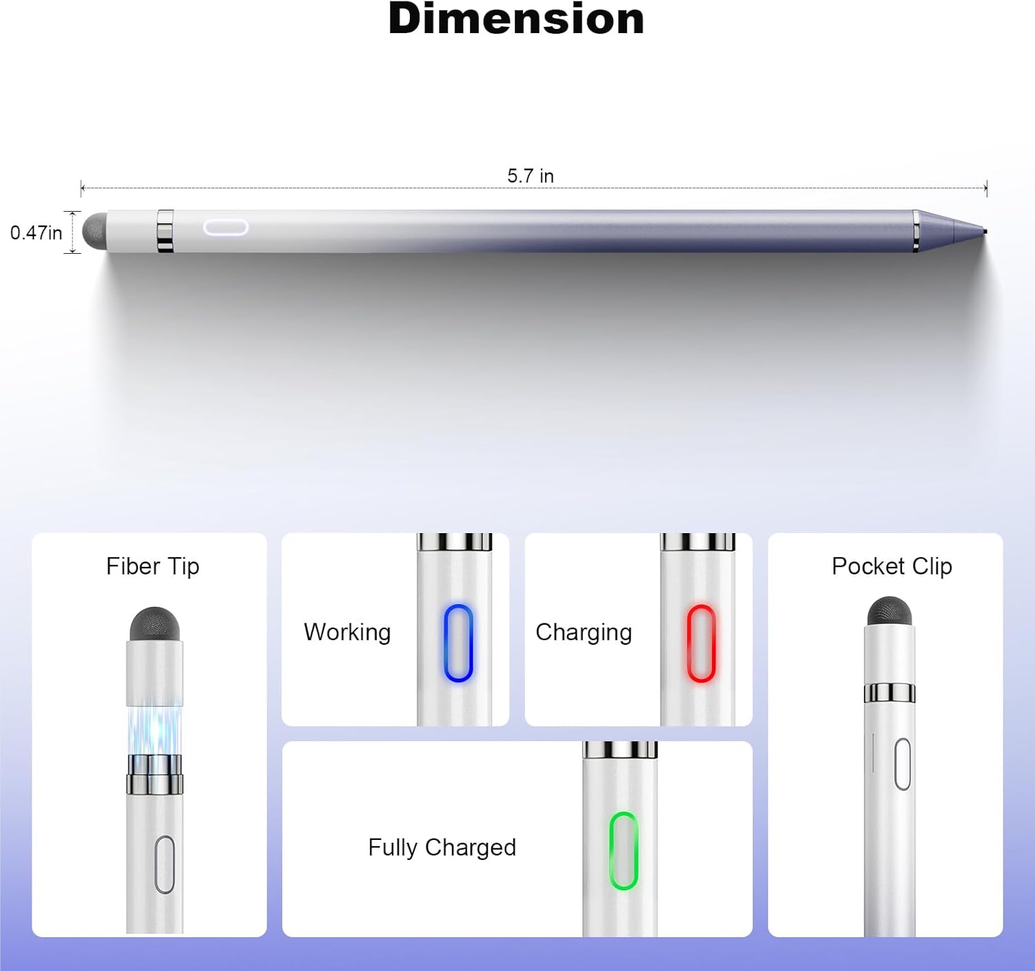 Stylus Pen for Touchscreen - 1.5mm Ultra-Fine Tip Stylus Pen for iPad Pro, Air | Magnetic Cap | 12H Battery | No Bluetooth | Compatible with iPhone, Android, Chromebook, Tablets (White Purple)