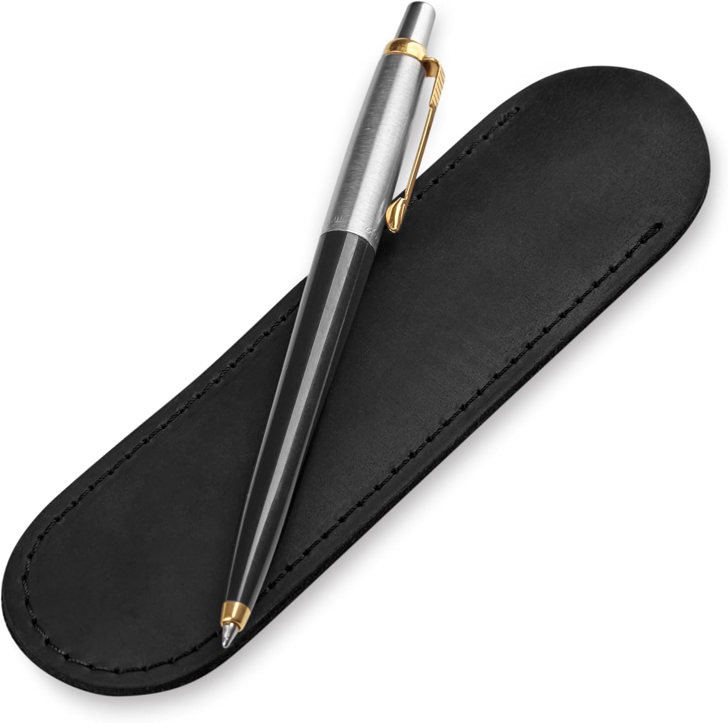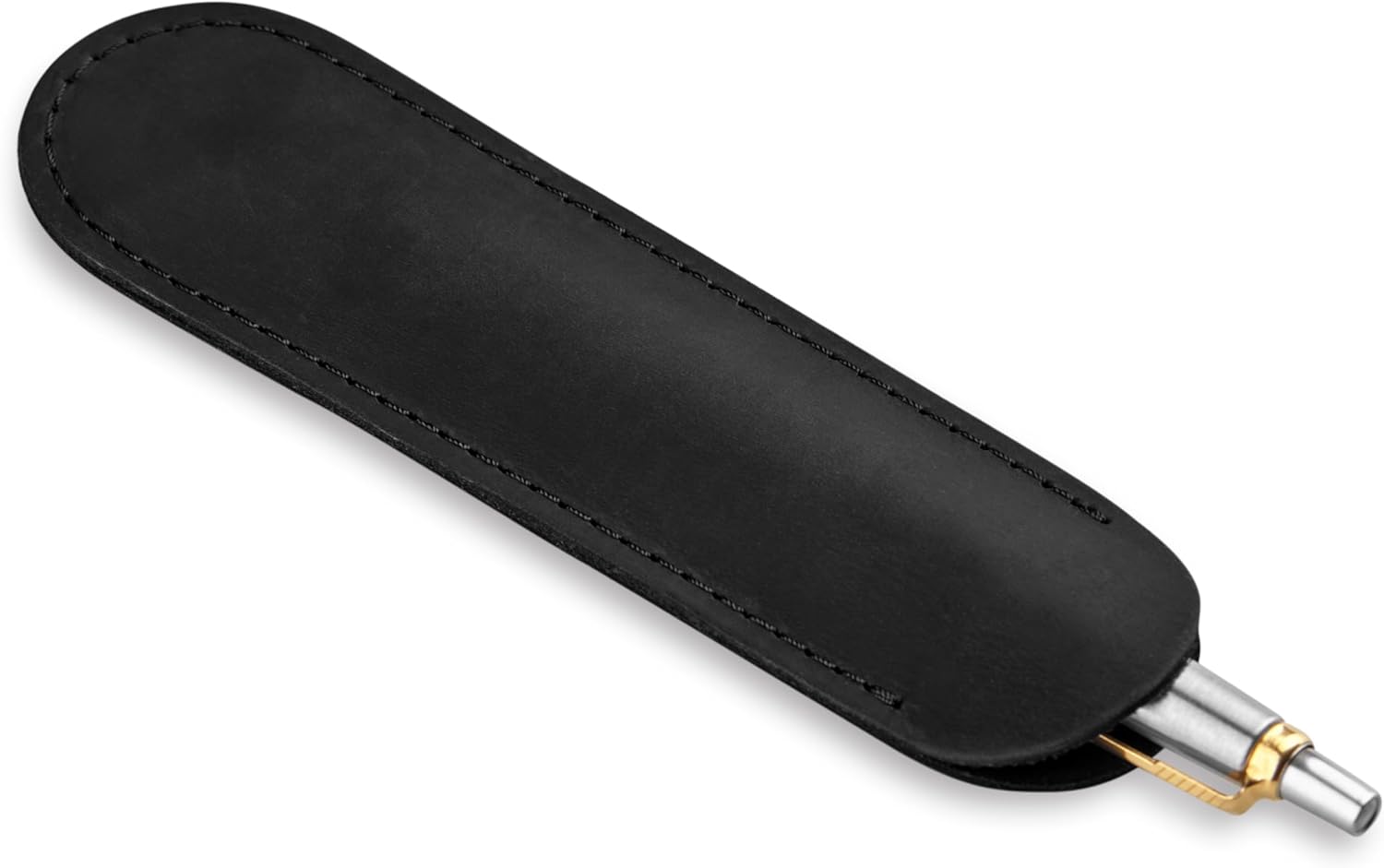 Leather Pen Case, Single Pen Pouch Cover, Fountain Pen Sleeve Holder (Black)