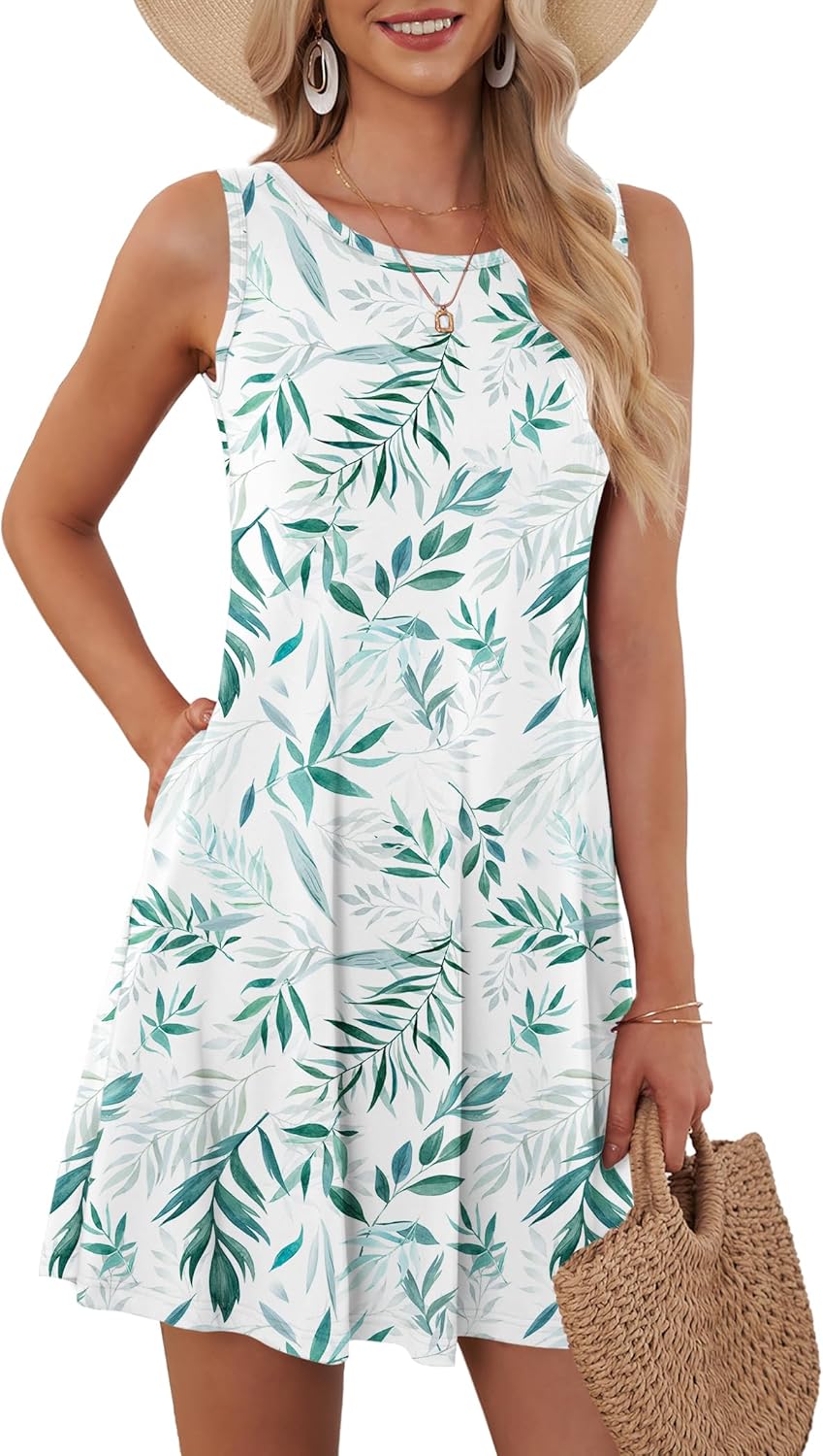 AUSELILY Womens Summer Dresses 2025 Casual Sleeveless Boho Floral Sundresses Beach Swimsuit Coverup with Pockets