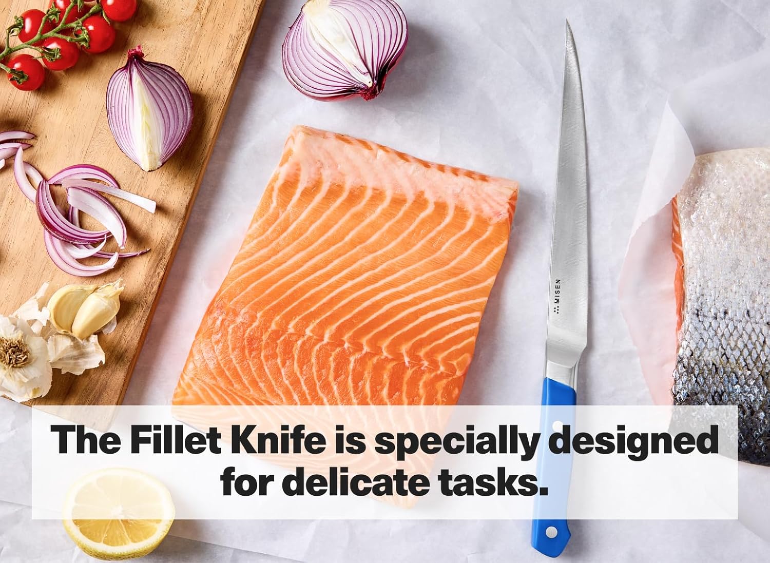 Effortless Filleting: Not just for fish - The Misen Fillet Knife features a 7-inch ultra-thin blade, perfect for filleting fish, trimming fat, and slicing delicate proteins with ease.