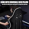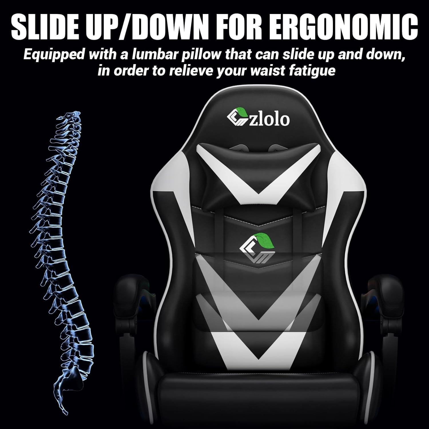 Ergonomic Black and White Gaming Chair: There is a small pillow on the top to protect your neck and avoid soreness. The backrest is widened to accommodate your shoulders, making you more comfortable to lean on. There is also an additional lumbar support massager that can vibrate to relieve your fatigue. The armrests have added sponge pads, which will feel softer when you lean on them. Certified: Gaming chair's seat plate is made of FSC-Certified wood.