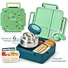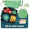 Bento Box for Kids with Thermos, [Large Capacity] Insulated Kids Lunch Box with 4 Compartment for Ages 3+, Drop-Proof & Dishwasher Safe Lunchbox Container Green