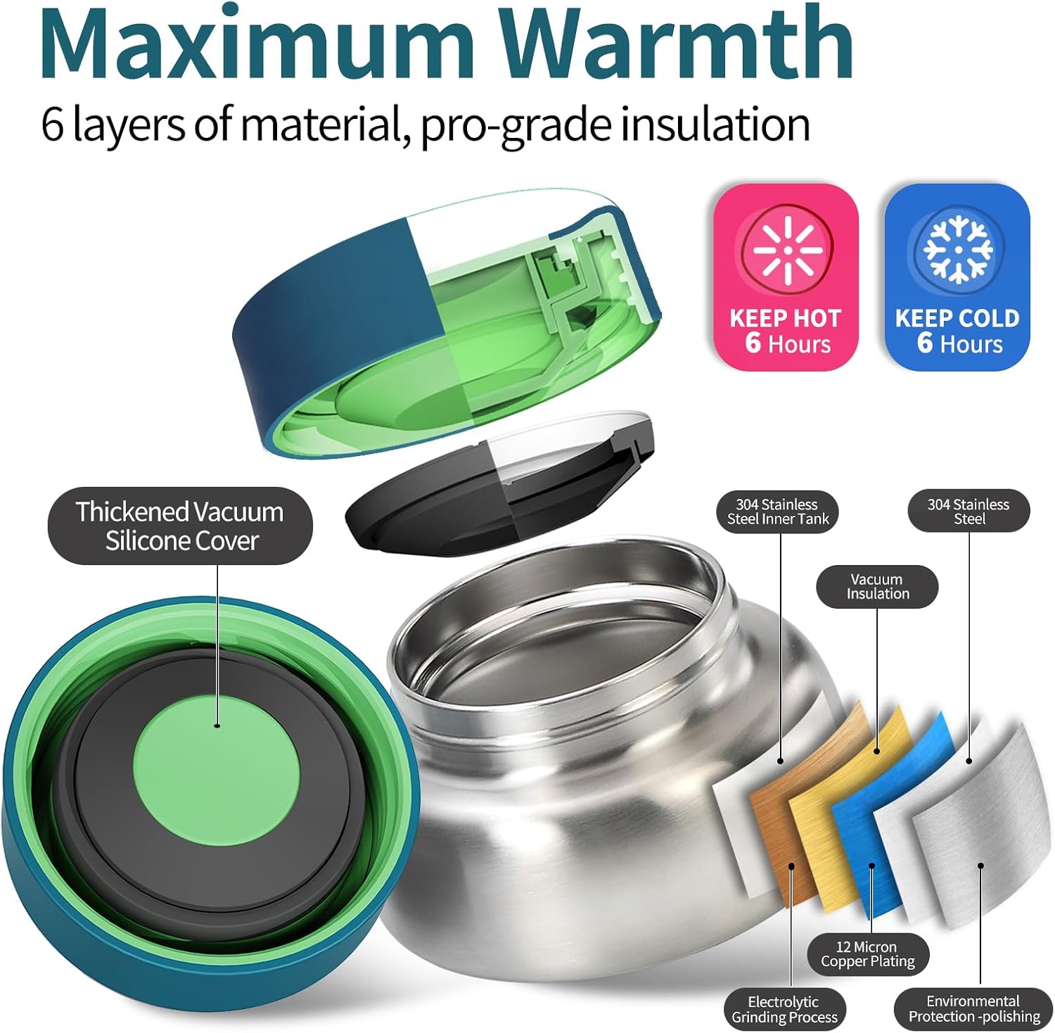 【PREMIUM QUALITY & SAFE】Made of high quality thickened PP plastic and medical grade silicone material, odorless and non-toxic, safe and healthy, suitable for children. The insulated thermos is made of 304 stainless steel, rust-free and easy to clean. The silicone surface of the thermos lid has superb friction, is easy for your child's little hands to open and close, making lunch time no longer a hassle