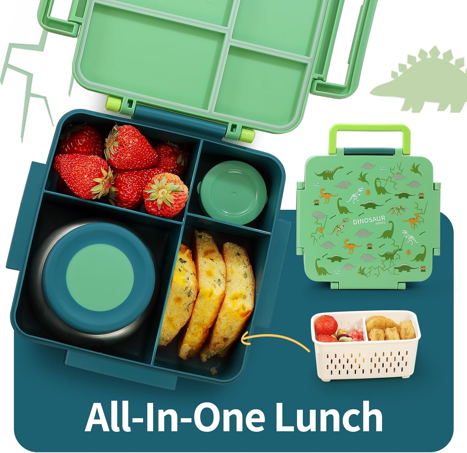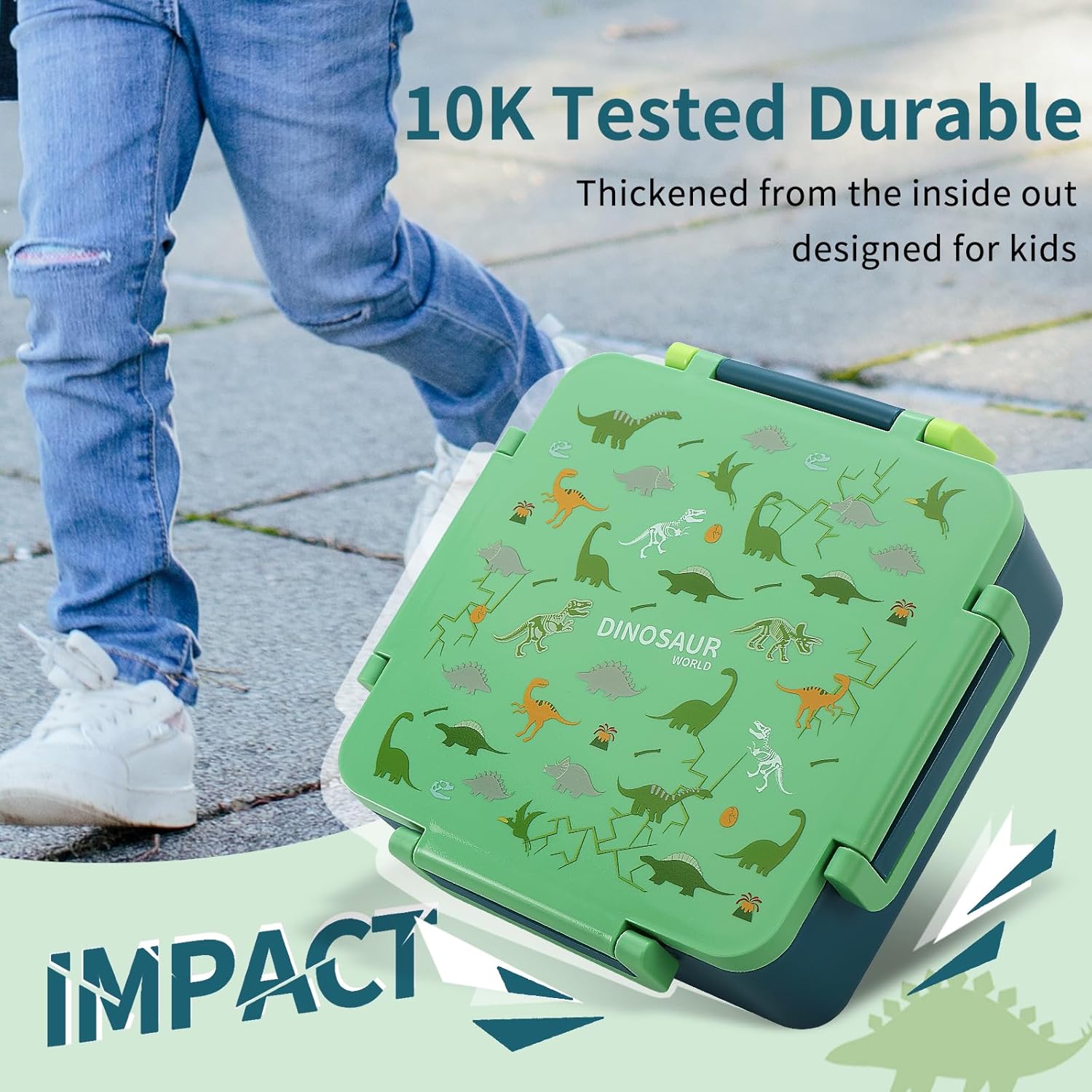 【TRIPLE BUCKLE & DROP-PROOF DESIGN】Original triple-lock design, from the thickened material to the secure latches, every detail is designed to be more sturdy and durable. The drop-proof shell protects the lunch box in case of a fall, perfect for active kids. Designed with durable handle, easy for kids to carry around