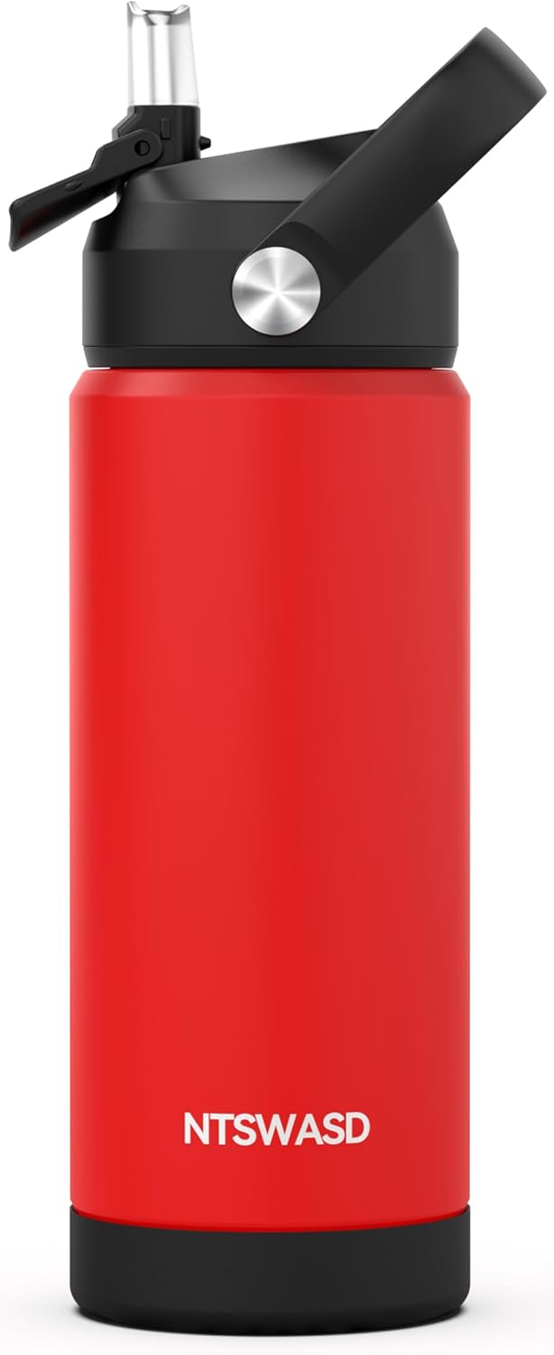 Kids Water Bottle with Straw,18 oz Boys Insulated Cups with Stainless Steel Leak Proof for School,Sport&Travel(Red)