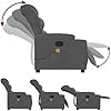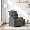 Sit back and drift away in this highly comfortable massage recliner chair!Manual reclining function: This reclining chair has a handle on the right side. You can manually adjust the footrest and the backrest to any position as per your comfort with a simple pull of the handle. This feature allows for a maximum tilt of 135 degrees. Additionally, the backrest can go quickly back to the original place with an easy pull of the handle.Vibration function: The featured 6 massage points let you experience a better-targeted massage. Additionally, the included hand control allows you to pick different massage programs. The massage function is powered by the USB connector, but the certified 5V USB power source is not included.Comfortable seat experience: The thickly padded seat, backrest, and wide armrests covered in fabric provide a cosy and warm sensation, making you feel embraced while seated. The fabric features a simple and clean look and is breathable and durable.Convenient cup holders and side pocket: This armchair has two convenient cup holders for your drinks and a side pocket for your remote control or keeping your essential items within easy reach.Solid and stable frame: The frame made of wood and metal provides a strong structure and stability. This reclining armchair is comfortable and durable.Color: Dark grayMaterial: Fabric (100% polyester), metal, plywoodFilling material: Foam, pp fiberSitting up dimensions: 29.7" x 36.6" x 39.2" (W x D x H)Lying down dimensions: 29.7" x 57.9" x 31.7" (W x D x H)Seat width: 19.7"Seat depth: 23"Seat height from the ground: 17.1"-17.5"Armrest height from the ground: 22.2"Options: Massage without heatingType of massage: 6-point vibration massageInput voltage: DC 5 VInput current: 2 AMax. load capacity: 242.5 lbAssembly required: YesLiving Room Furniture /Chairs / Armch