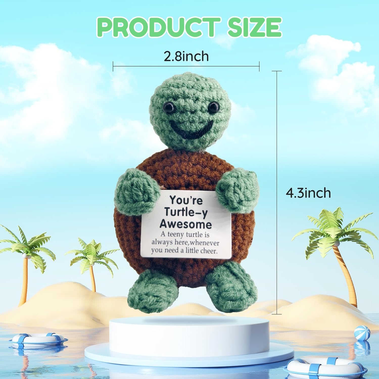 Funny Positive Crochet Turtle Gifts, Mini Handmade Sea Turtle Figurine, Inspirational & Motivational Cute Decor for Women & Men, Emotional Birthday Presents