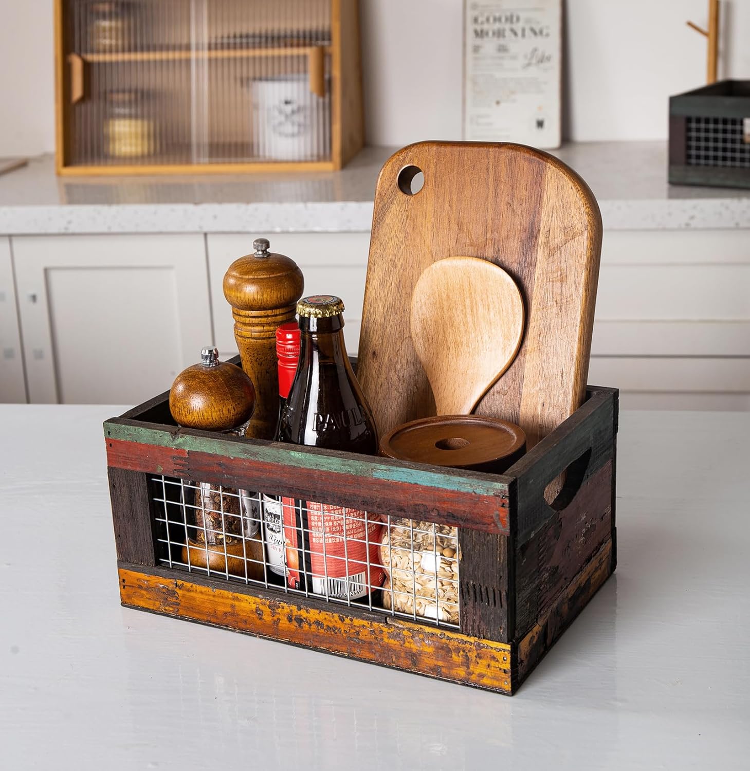 SUPERIOR QUALITY – Crafted from solid reclaimed wood with wire mesh panels, these nesting crates are sturdy and durable that suitable for long-term use in your family. They are stackable and nested for easy storage and save your space, they can even be used in the drawers or on the walls.