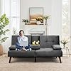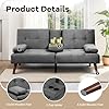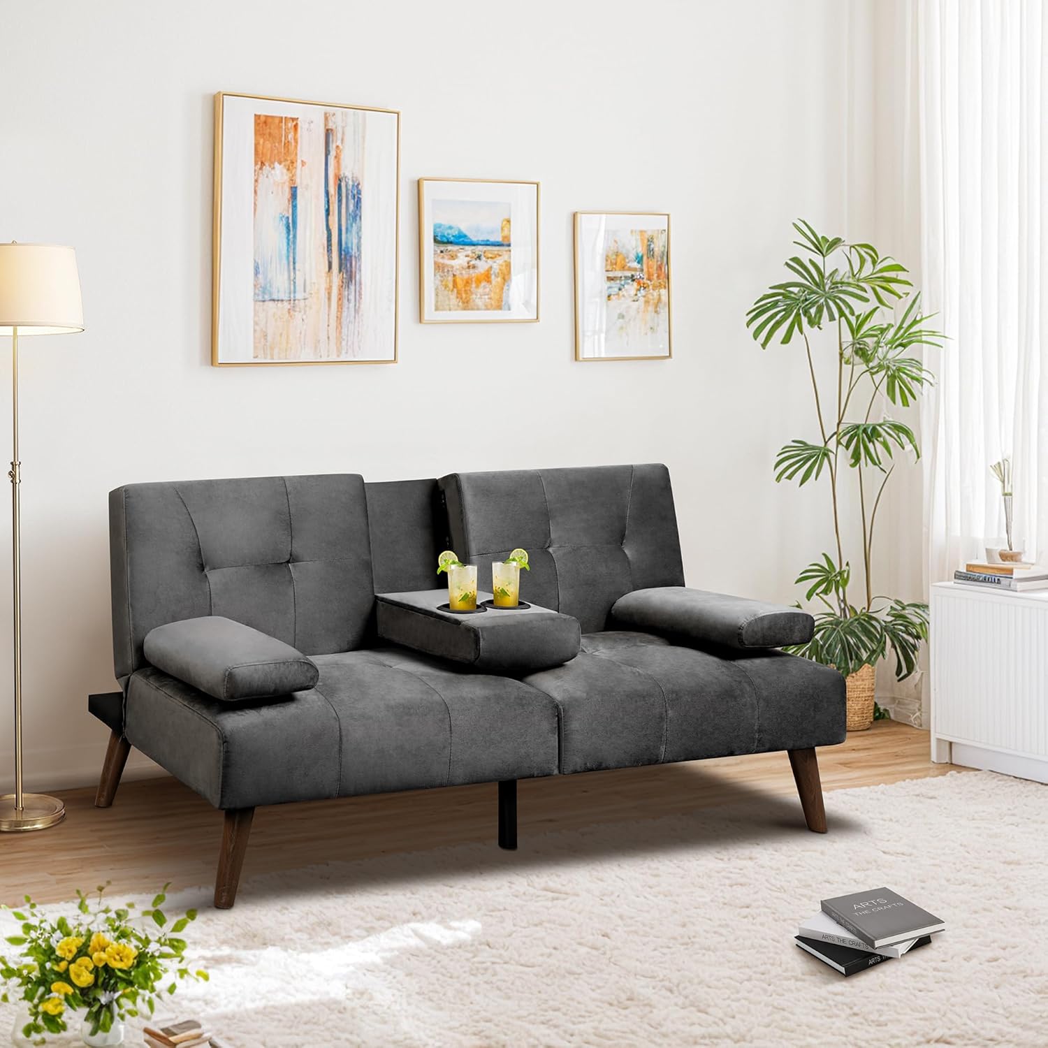 Walsunny Velvet Futon Sofa Bed, Convertible Couch Bed with Adjustable Backrest, Cup Holder, Dark Gray, 34.6"D x 59.4"W x 25.6"H, Modern, Living Room
