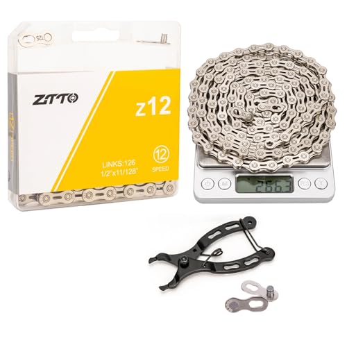 ZTTO Half Hollow 8/9/10/11/12 Speed Bike Chain Kit, Lightweight Silver Mountain Bike Chain with Chain Master Link Pliers and Bicycle Buckles for MTB, Road Bike (Half Hollow Style, 12 Speed)