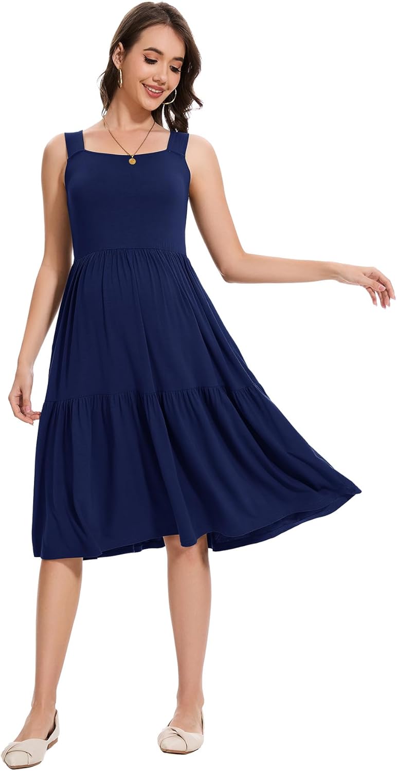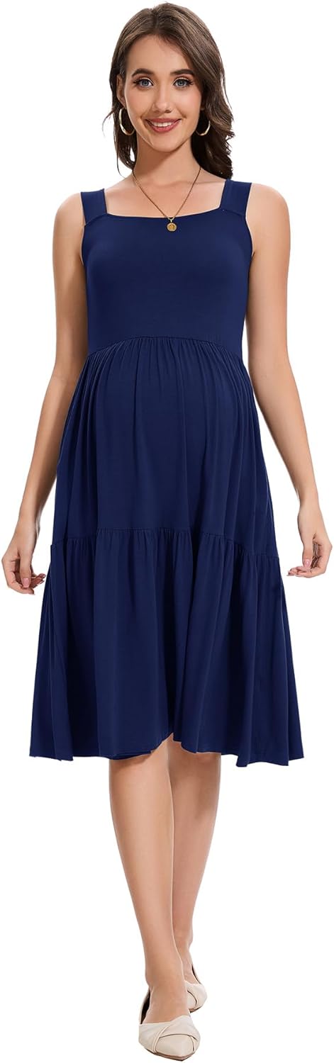 Smallshow Women's Maternity Tank Dress Sleeveless Ruffle Pregnancy Clothes