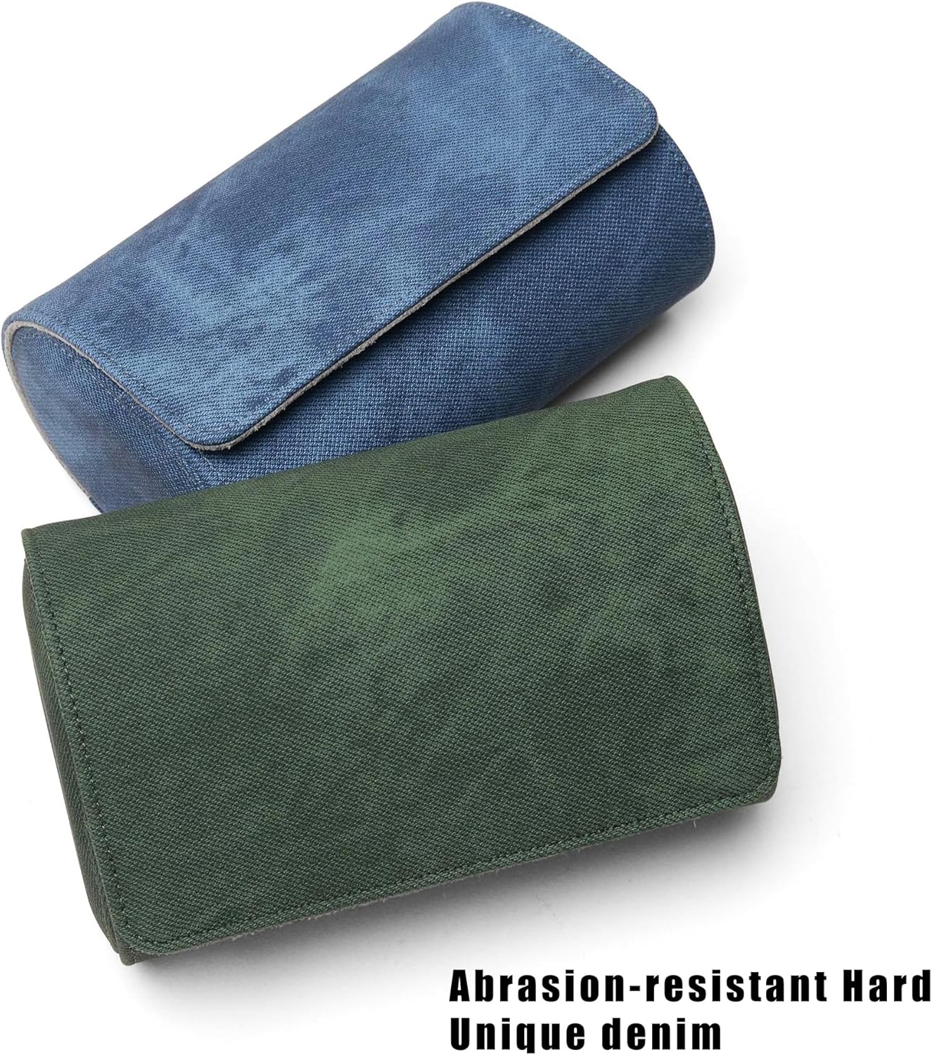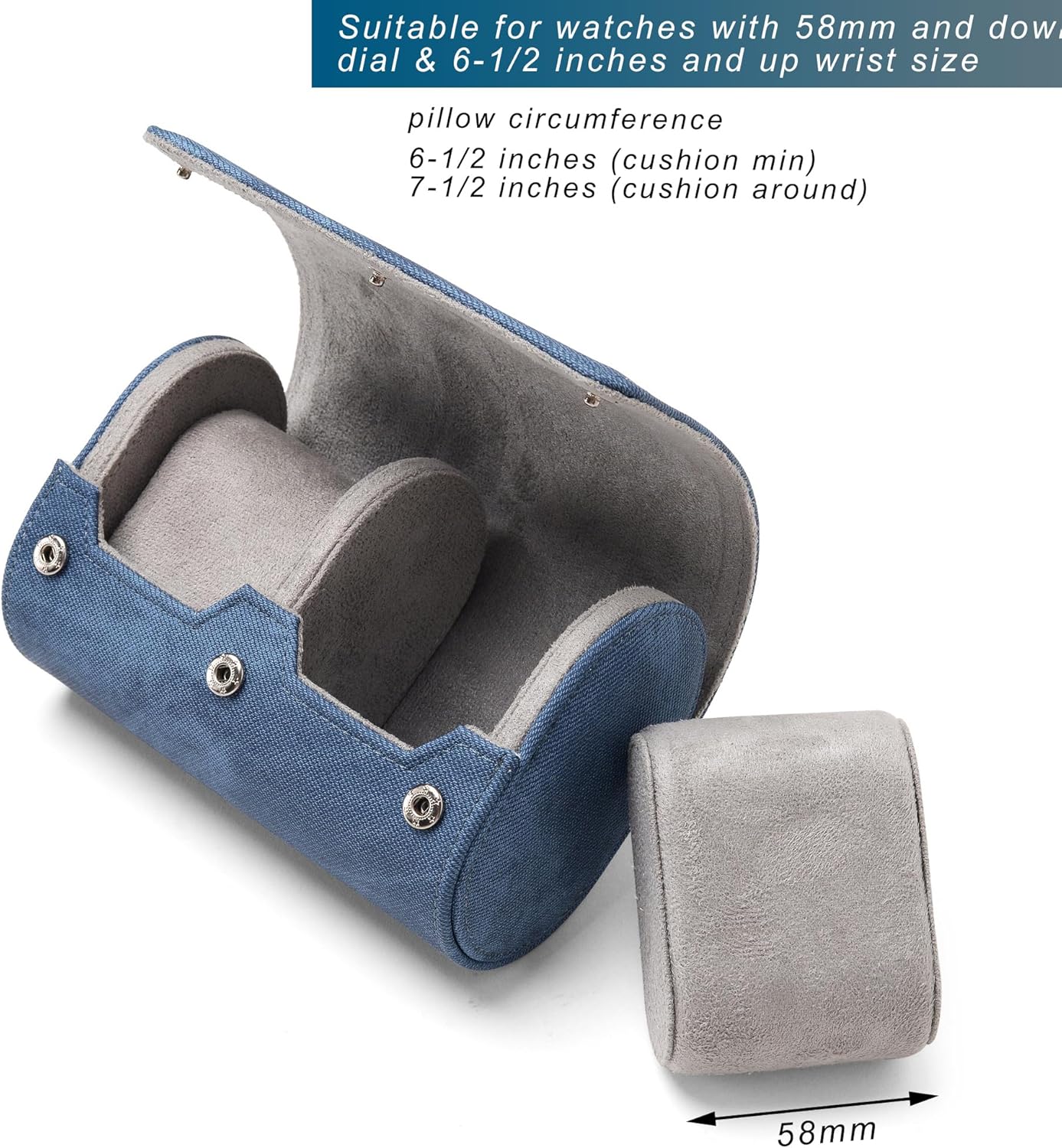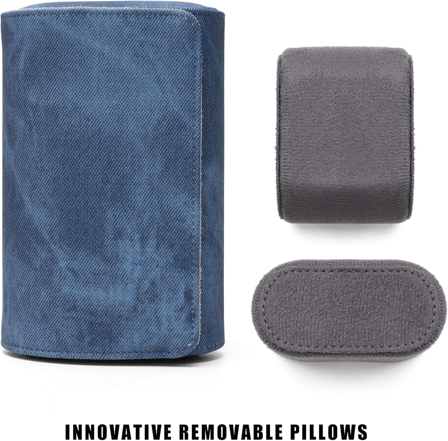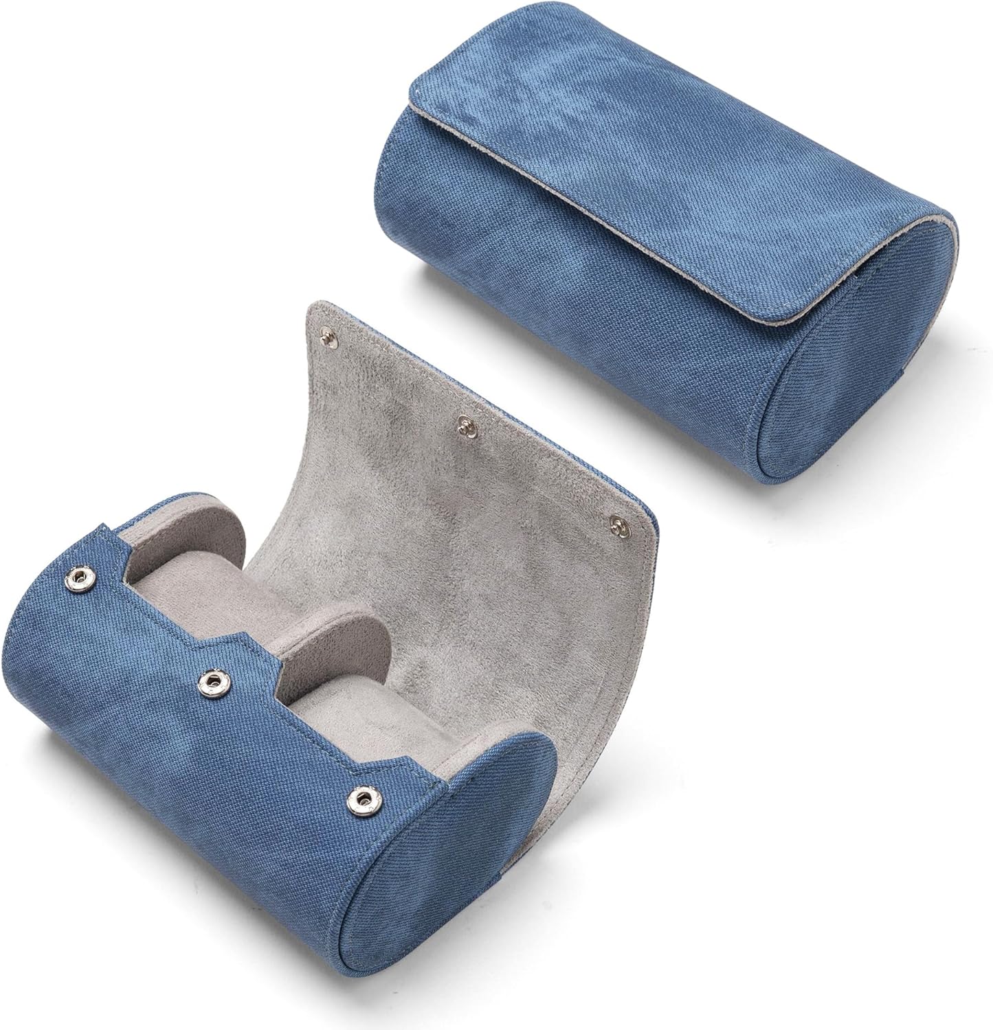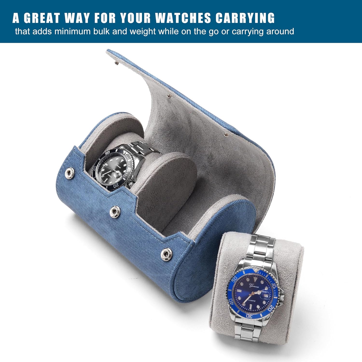 Longjet Watch Roll Travel Case for Men Portable Watches Organizer Box with Removable Velvet Pillow Holder (2 Slot Denim Blue)