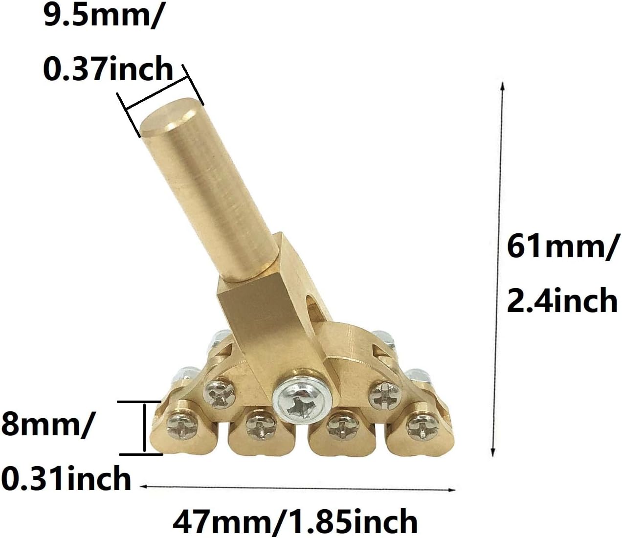 Specifications:Material:BrassColor:BrassSize: 47x24.5x61mm/1.85*0.96*2.4inchShank diameter: 9.5mm/0.37inchPackaging:1x Guitar Fret Press Installation Tool