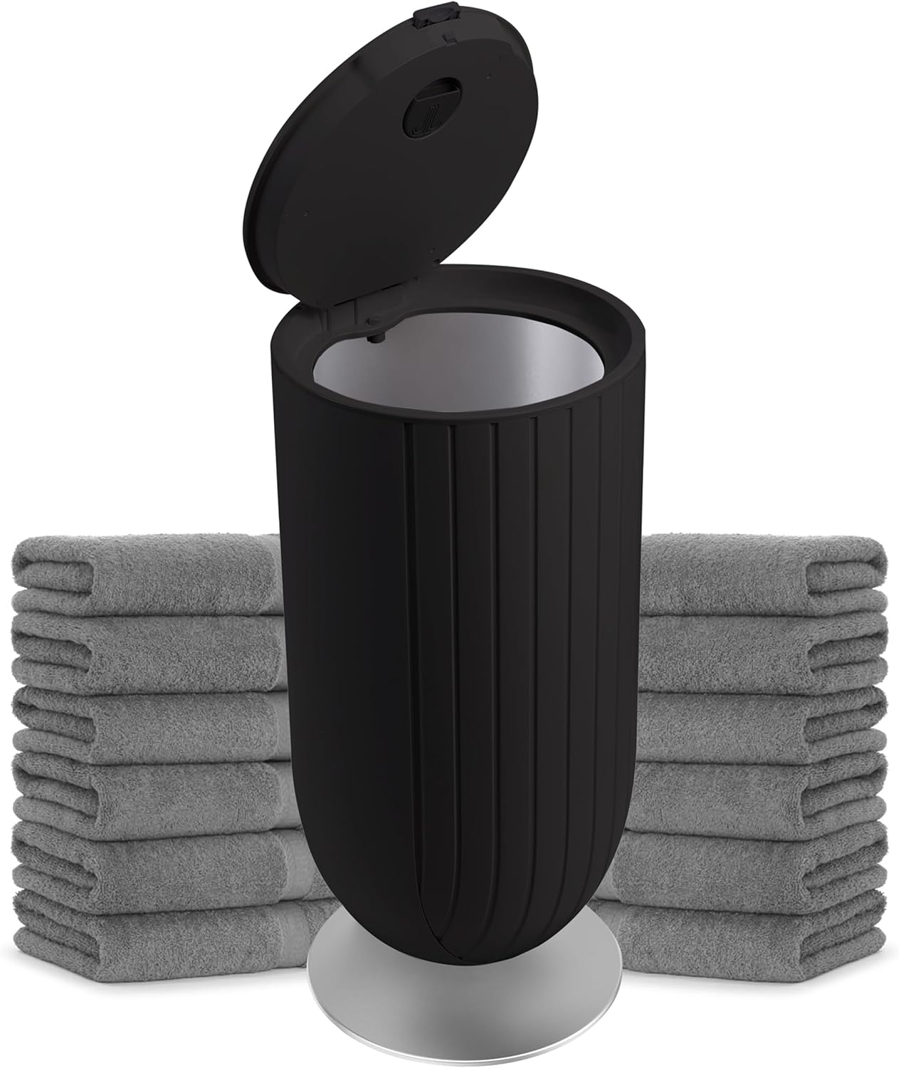Experience EZZINI luxurious warmth and comfort with our 27L Towel Warmer, designed for rapid heating and ultimate convenience. Using advanced high-pressure warm-air circulation, it heats towels in just 5 minutes, delivering warmth 30% faster than comparable models—perfect for chilly mornings or post-shower relaxation. The sleek modern design features a stainless-steel interior, metal base, LED display, and an automatic flip-top lid, making it a stylish addition to homes, hotels, spas, and gyms. With smart multi-mode control, you can adjust between four temperature settings (170°F–230°F) and timers (15–90 minutes), while the drying mode (2–10 hours) and negative ion ventilation keep items fresh, odor-free, and static-free. Boasting a spacious 27L capacity, this towel warmer comfortably holds two oversized bath towels (70" x 45") or up to eight medium towels, ensuring cozy warmth for the whole family. Plus, the built-in aromatherapy function allows you to infuse towels with your favorite scents using the rotating aroma disk. The soft night light adds extra convenience, making it easy to access in low-light settings. For safety and peace of mind, this towel warmer is ETL certified and equipped with automatic shut-off, intelligent temperature control, and overheating protection. *Please note: The internal temperature is high during operation—do not open the lid while in use.* Upgrade your daily routine with a touch of spa-like luxury and warmth!
