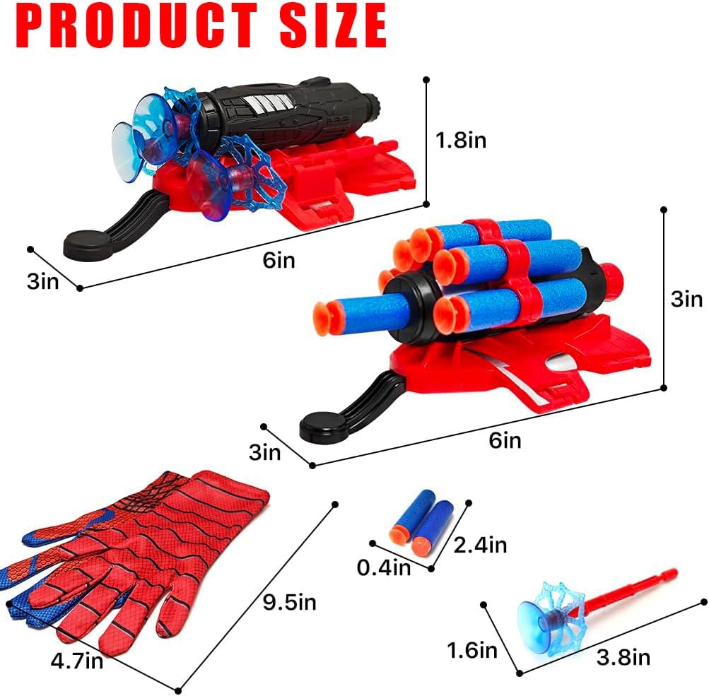 【Most Realistic Spider Web Shooter Experience】The gloves mimic super hero grip, while the suction cup launcher recreates iconic wall-climbing action