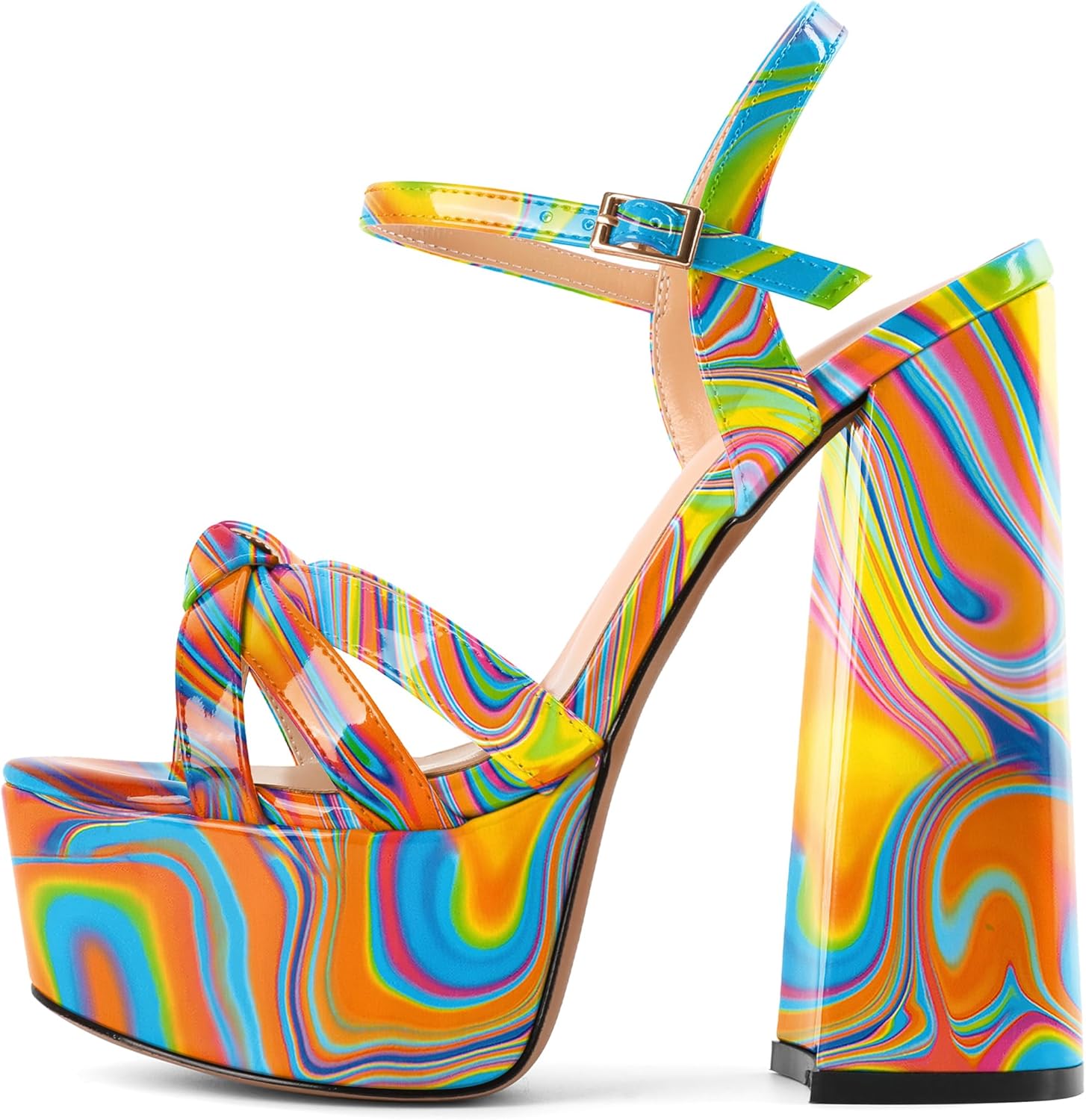 Mettesally Women's Chunky Platform Heels Heeled Sandals Open Toe Ankle Strap Sandals Summer Dress Shoes