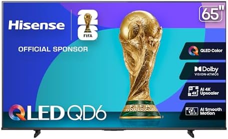 Hisense 65" Class QD6 Series (65QD6QF, 2025 Model) QLED 4K UHD Smart Fire TV, Voice Remote with Alexa, Dolby Vision, Dolby Atmos, Motion Rate 120, HDR 10+, Game Mode Plus, MEMC, VRR, ALLM