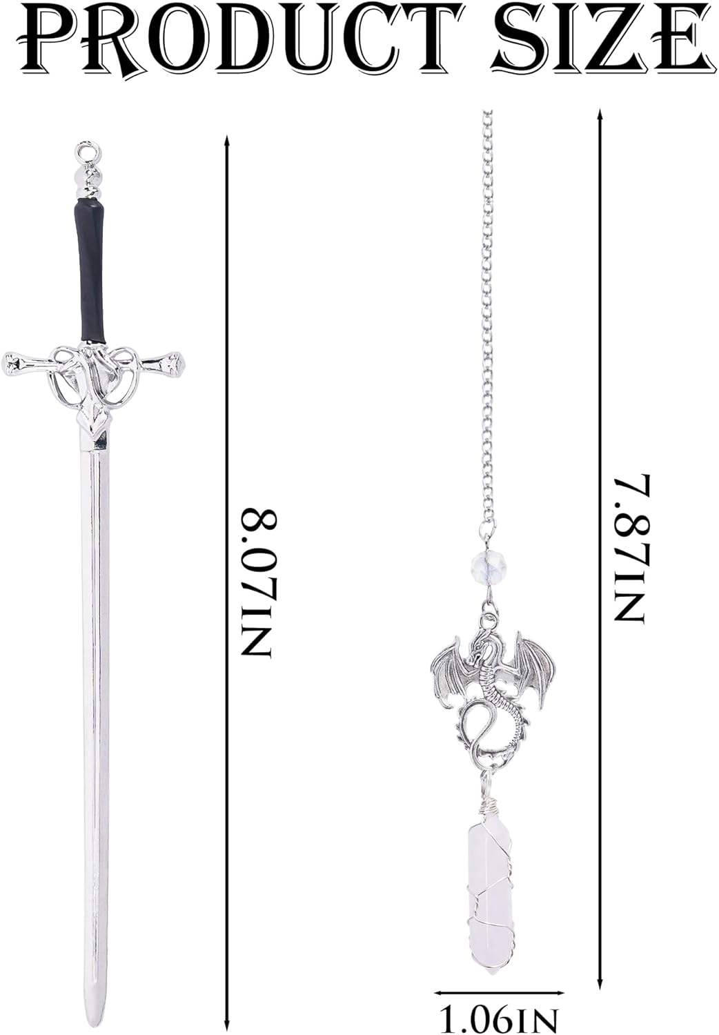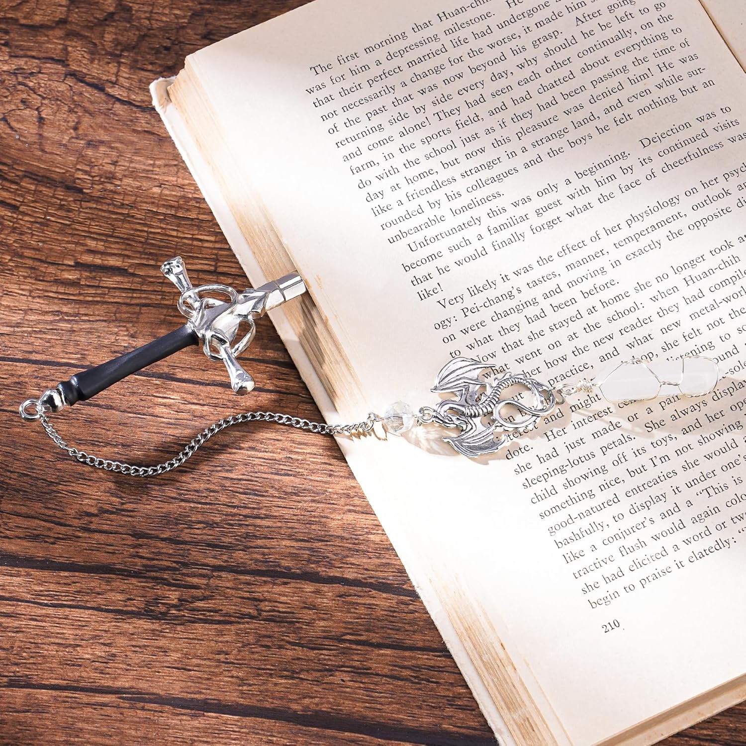 Perfect Size: The size is 3.54 × 2.76 × 0.63 inch. The long sword measures 20.5 cm/8.07 inch, providing an excellent fit for books of varying sizes. The crystal pillar's design, hanging delicately from the metal chain (10 cm/3.93inch), along with the 20 cm/7.87 inch tassel, ensures ease of use and adds a touch of elegance. It’s long enough to mark pages efficiently, yet light enough to be convenient for everyday use. Its thoughtful design makes it a striking accessory for fantasy novels readers