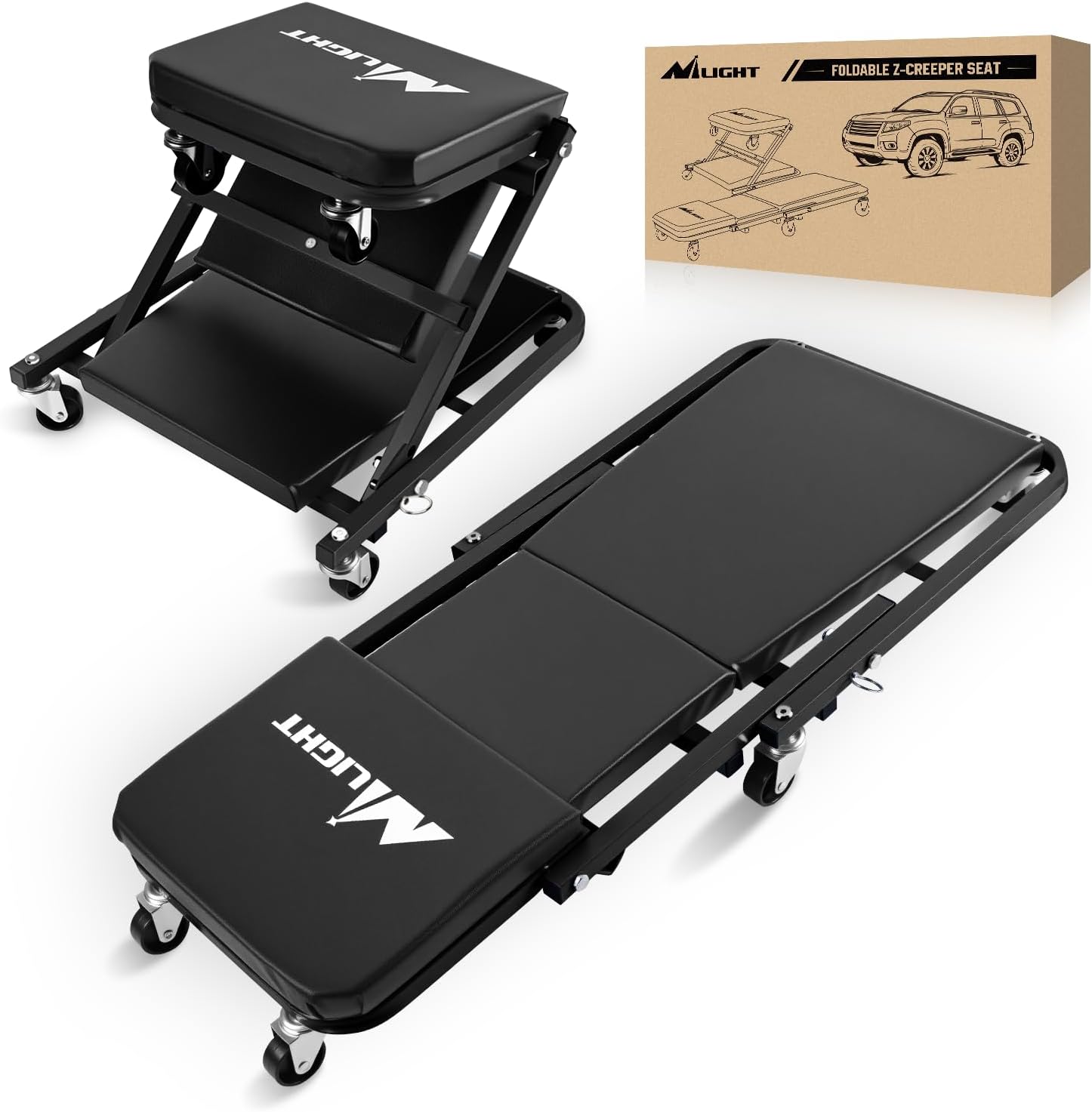 Nilight 36" Z Creeper - 2-in-1 Folding Rolling Mechanic Seat, 36 inches Adjustable Lay-Down or Sit Garage Chair, 300 lbs Capacity, Grey Black
