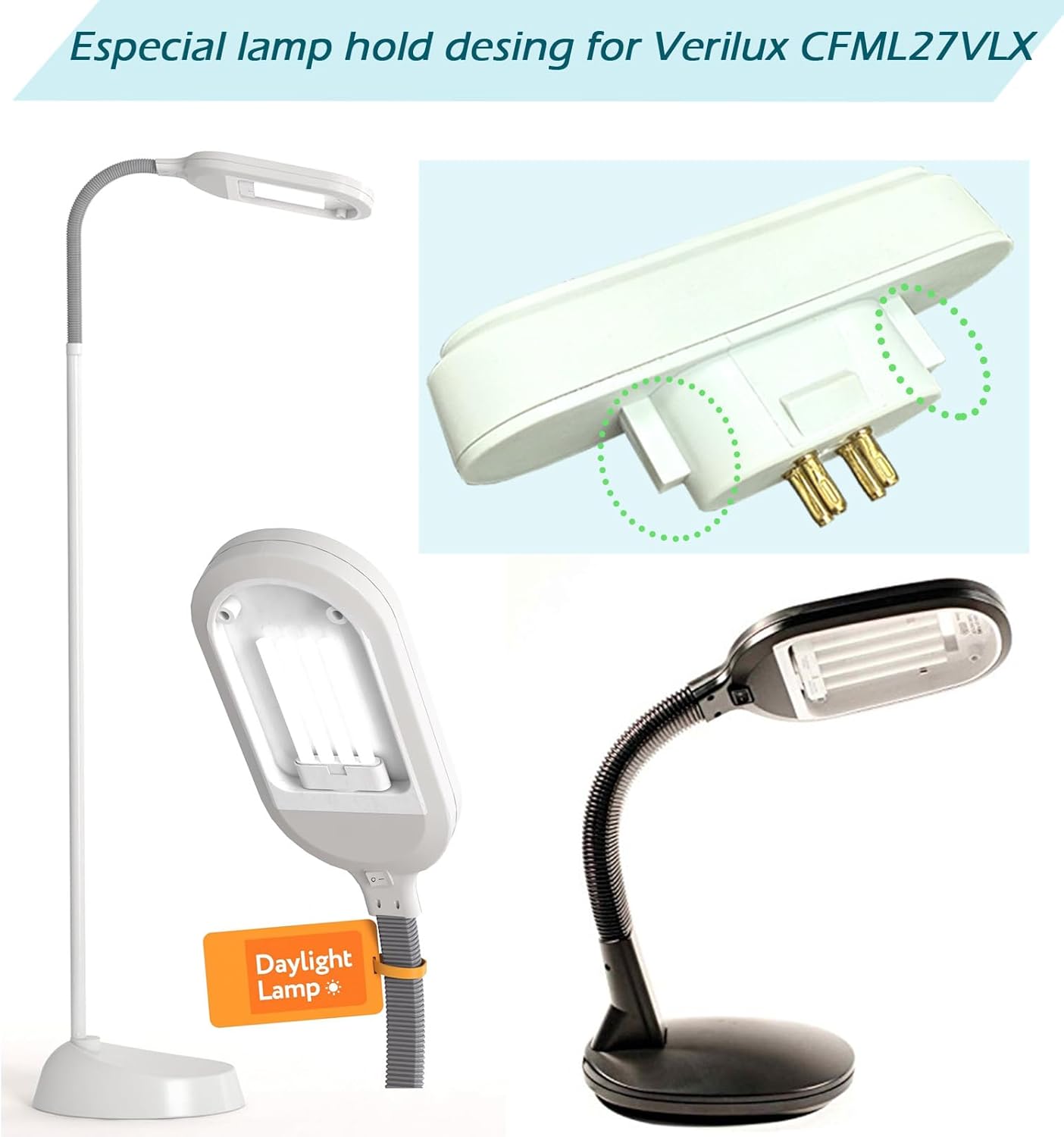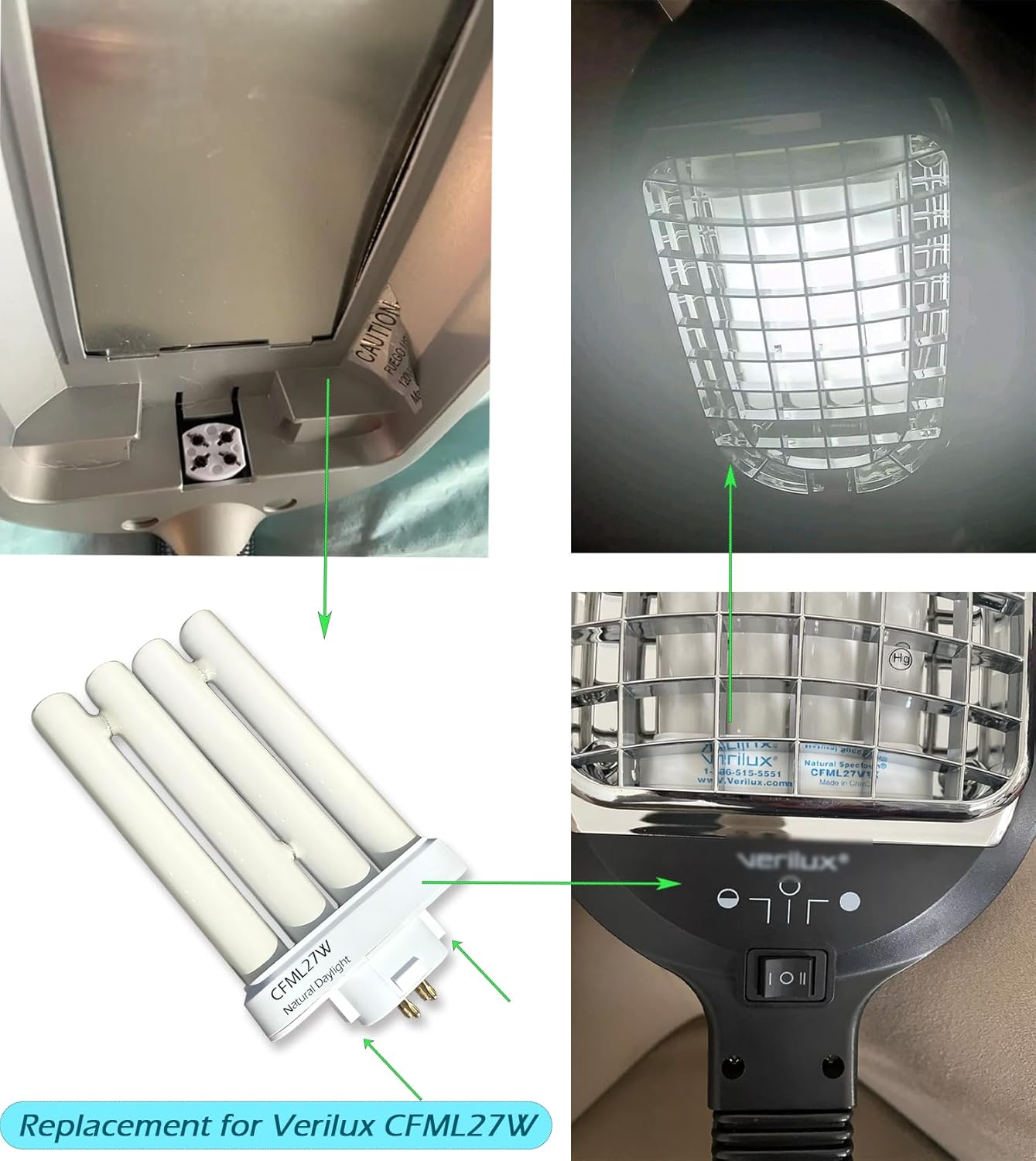 CFML27VLX Full Spectrum Fluorescent Bulb, 6500K Natural Daylight Replacement for Verilux 27W Desk & Floor Lamps Light,GX10Q-4 4 Pin Base in a Square