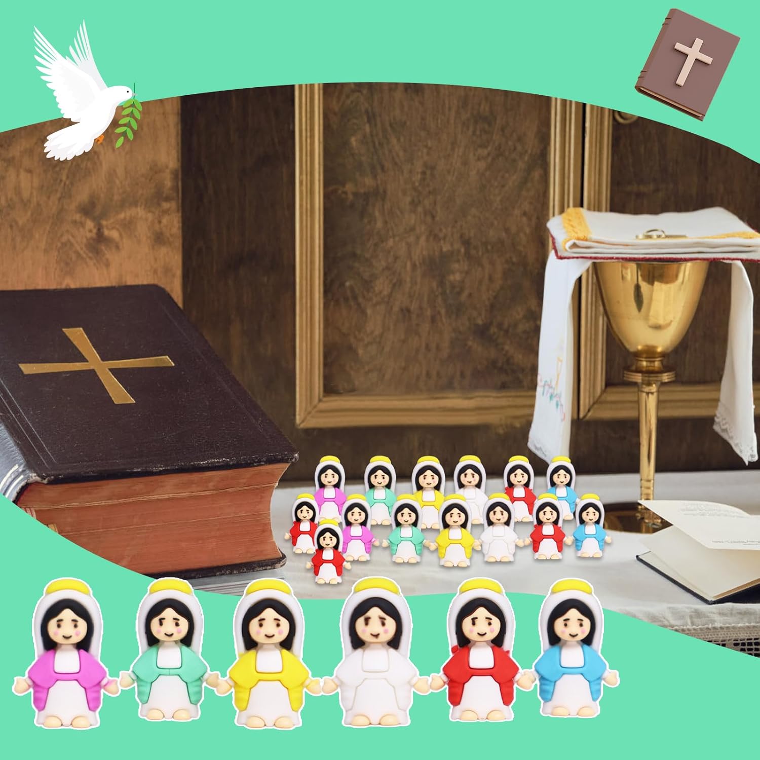 Little Virgin Mary Figurines Christ Toys Mini Virgin MaryFigures to Hide and Seek Sunday School Religious Party Favors Gift for Easter Egg Stuffers (30PCS)