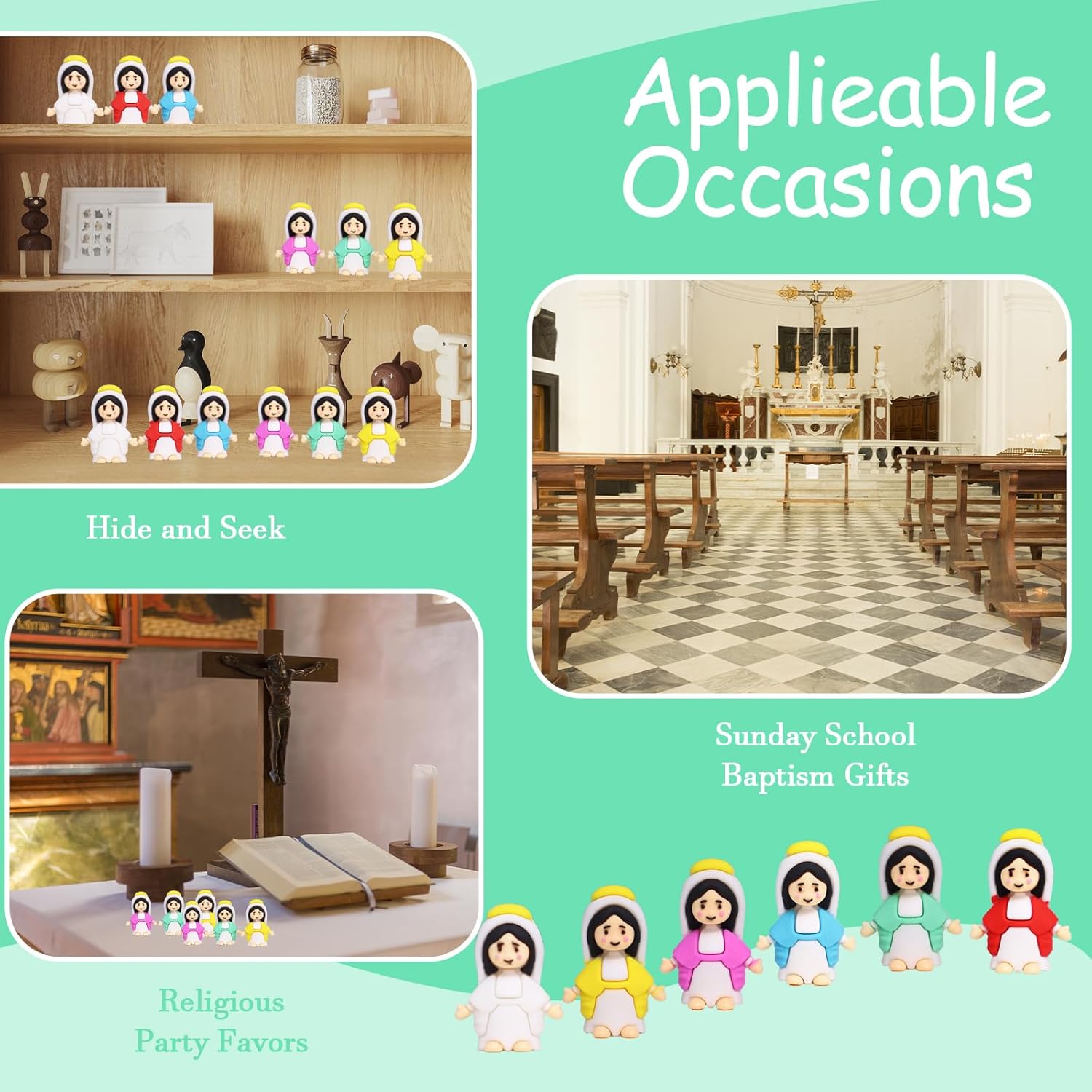 2.Our Little Virgin Mary Figurines Are Perfect for Sunday Services or As Little Jesus Gifts. These Mini Figures Are Not Only Charming But Also Profound Symbols of Faith.