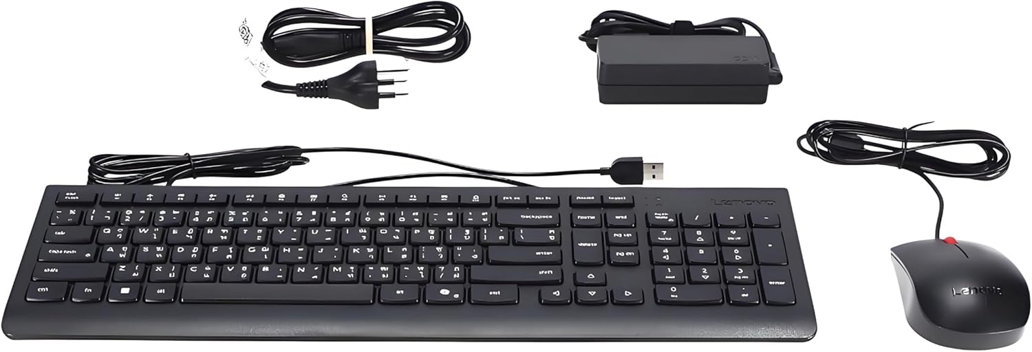 Operating system: Windows 11 Professional English (64-bit). Designed for school, work, and entertainment, this Lenovo All-in-One desktop computer for home office ensures smooth multitasking and efficient operation, tackle your busiest days and save everything you love. USB Calliope Wired Keyboard, Black, English (US) and USB Calliope Wired Mouse, Black; Black. Bundled with vent-hear Cable.