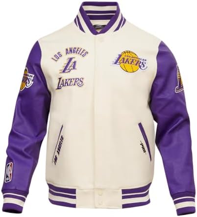 Celebrate the glory days of NBA with our Men's Retro Classics Wool Pu Varsity Jacket. Embrace the vintage charm of historic logos and retro aesthetics. Crafted from a premium wool blend with faux leather sleeves