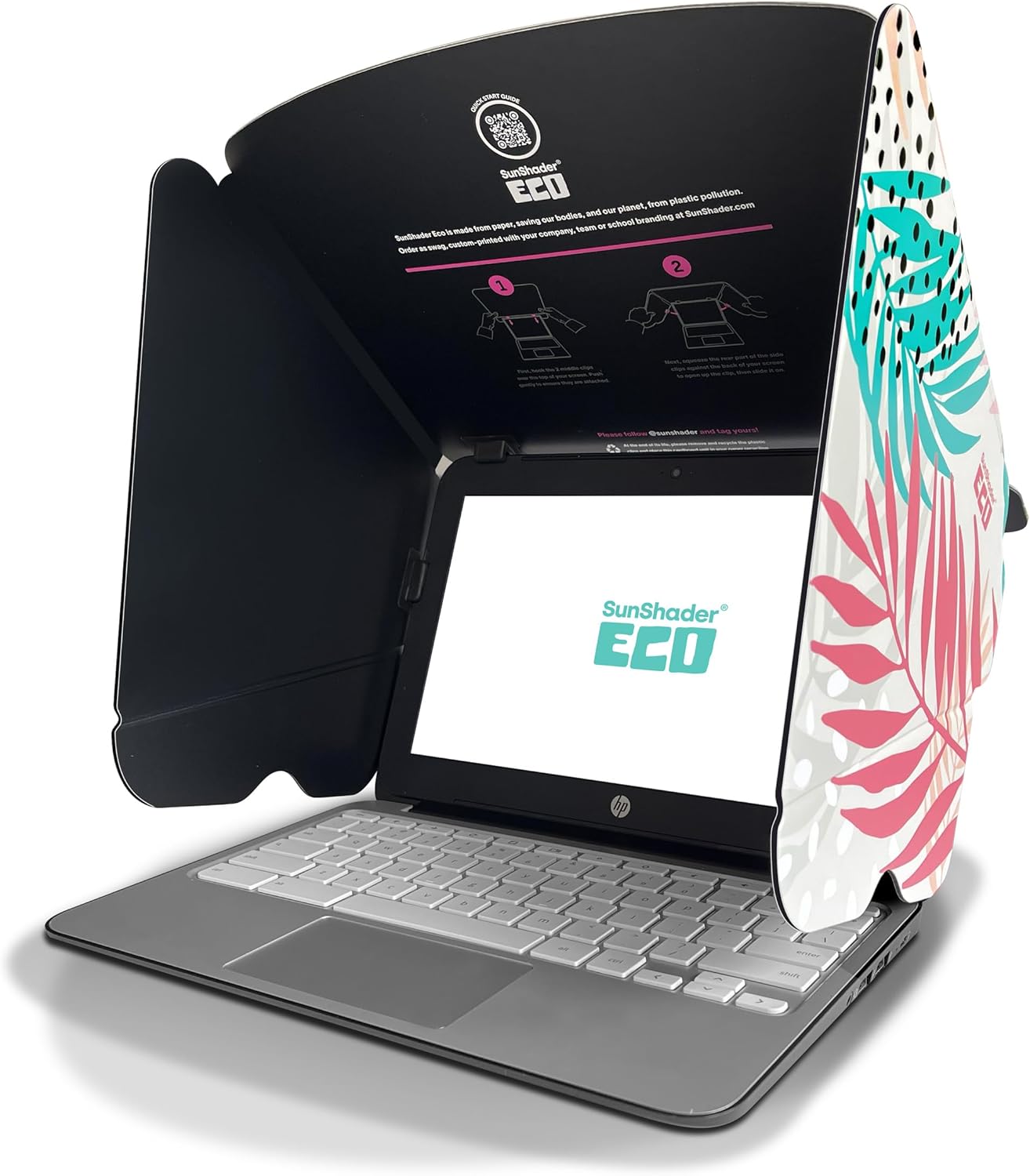 Laptop Sun Shade (M, Tropical), SunShader Eco, Recyclable Multi-Layered Cardboard Laptop Sun Shade for Working Outside & Privacy Screen - Patent 10963010